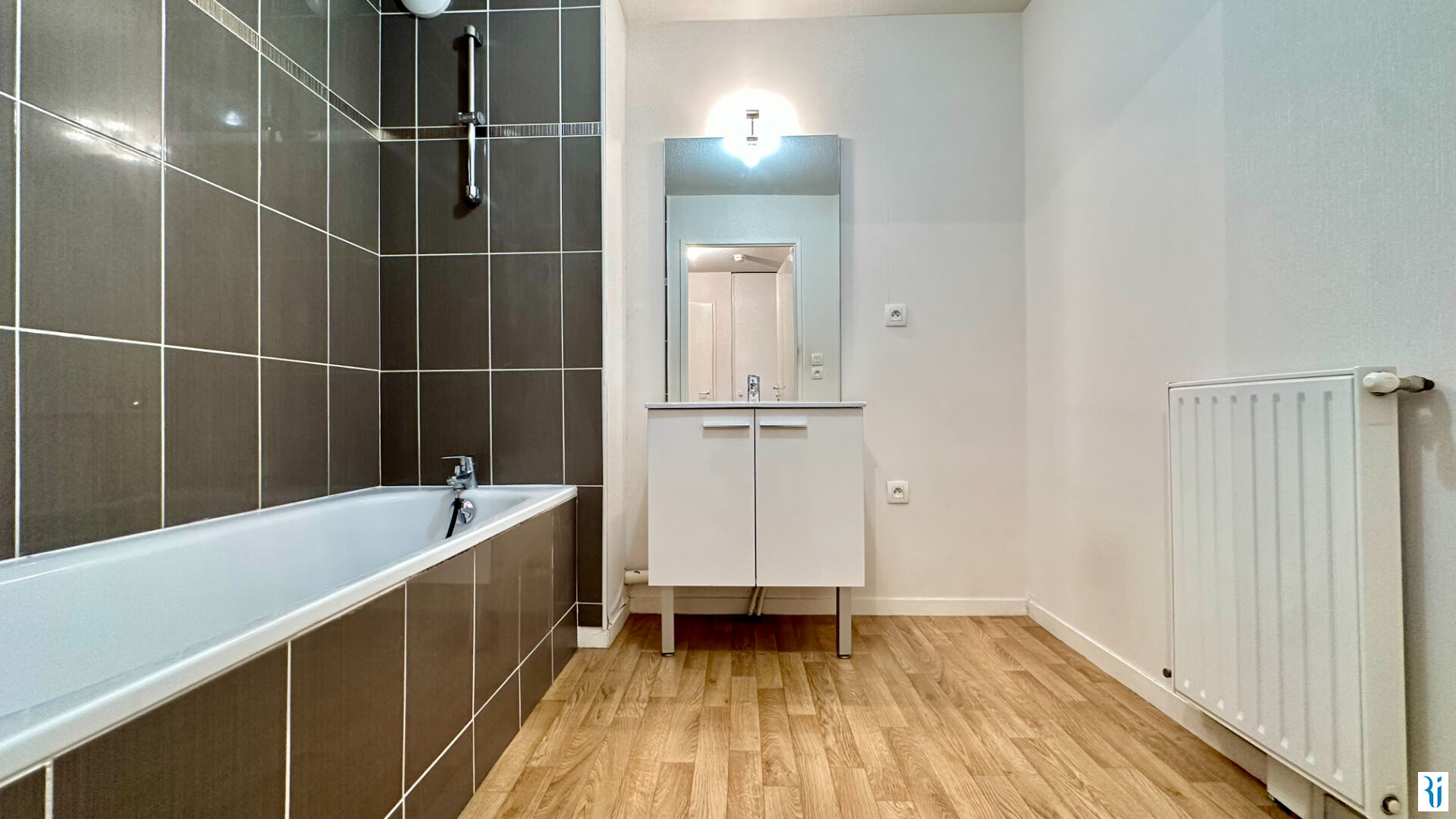 A GRAND-QUEVILLY quartier MATISSE Le Cabinet SAUVAGE TRANSACTION vous propose cet appartement idéalement situé dans le nouveau quartier Matisse comprenant un séjour donnant sur une terrasse sans vis-à-vis, une cuisine ouverte et aménagée, une salle de bains, WC séparés et une chambre spacieuse. PRÉCISIONS : une cave et une place de stationnement en sous-sol. NOTRE INSTINCT IMMOBILIER vous le conseille pour la qualité de la résidence, ses faibles charges et son calme. (6.09 % honoraires TTC à la charge de l'acquéreur.) Copropriété de 363 lots (Pas de procédure en cours). Charges annuelles : 606.64 euros.