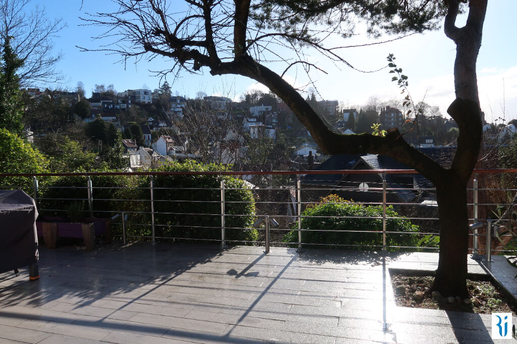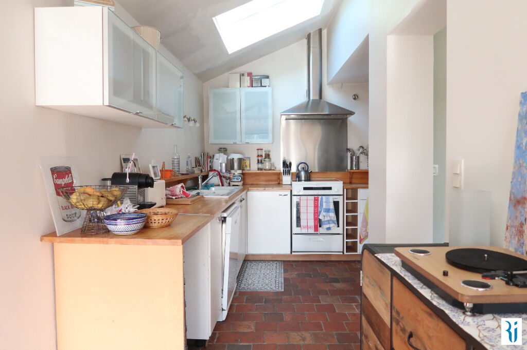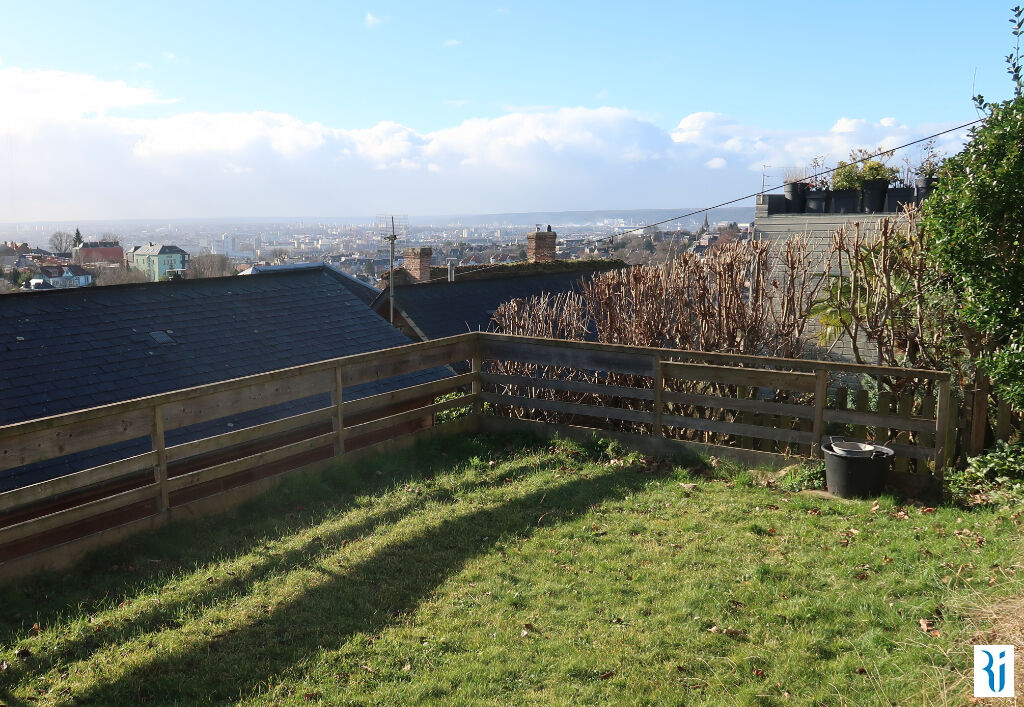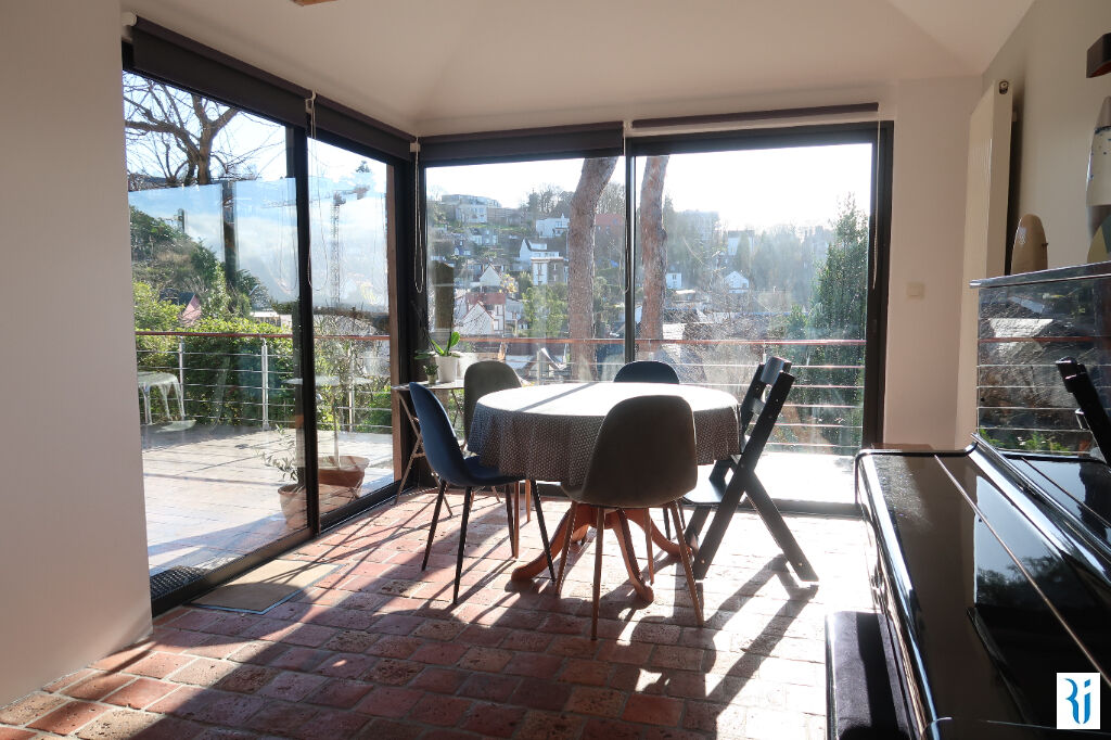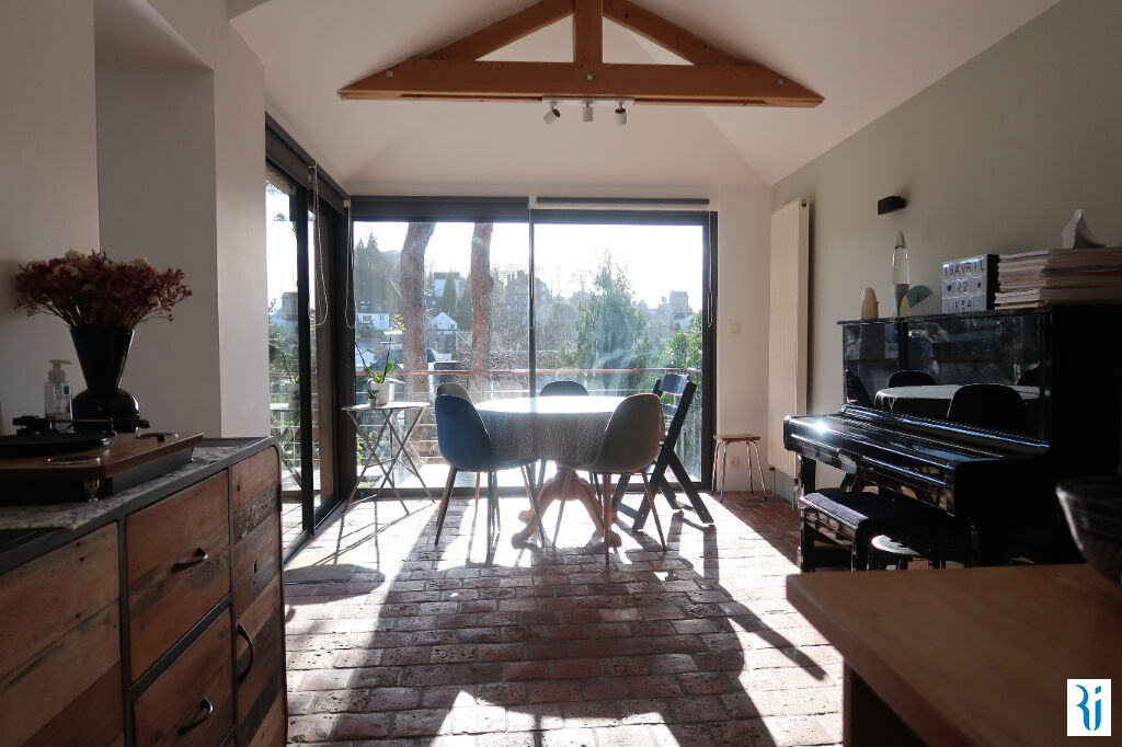 NOUVEAUTÉ, proposée en EXCLUSIVITÉ par le cabinet. BOIS GUILLAUME, Mont Fortin. Dans un très bel environnement calme avec vue dégagée et seulement 1 km de la gare de Rouen, très jolie maison de charme de 102 m2 avec extension contemporaine. Celle ci vous séduira par le caractère de l'ancien et le confort du moderne. rdc: salon parqueté et salle à manger donnant directement sur très grande terrasse, cuisine équipée, arrière cuisine,wc. 1 er étage: palier, 3 chambres, sdb, sdd avec wc. jardin sur 3 niveaux de 332 m2. Maison coup de coeur rare à la vente.