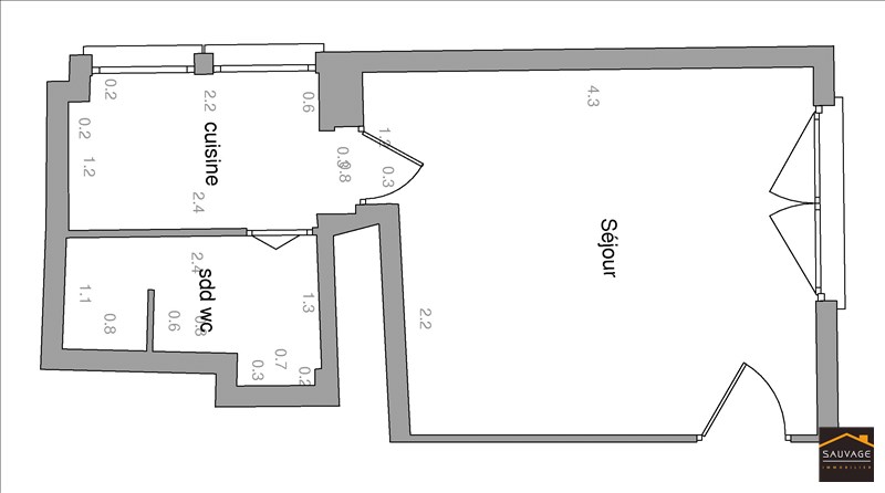 SDB + WC : 2.9 m²