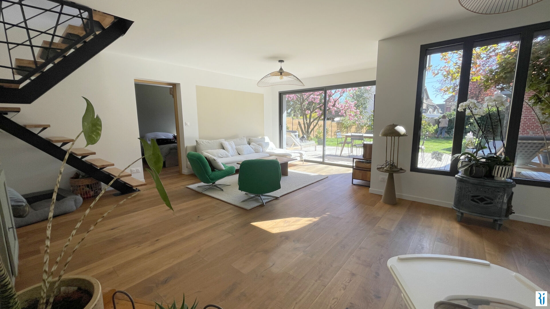LE CABINET SAUVAGE TRANSACTION VOUS PROPOSE DE DECOUVRIR CETTE MAISON VENDUE PAR NOS SOINS EN OFF MARKET: BOIS GUILLAUME. Dans un cadre de vie agréable et préservé, découvrez cette superbe maison coup de coeur et revisitée dans un pur style contemporain de 173 m² habitables. Entièrement rénovée et nichée dans un joli jardin clos et arboré de 485 m2. Permettant un accès très rapide au centre ville de Rouen ainsi que toutes les commodités, cette propriété de haute qualité séduit par ses multiples espaces de réceptions lumineux et donnant directement sur terrasse et jardin exposé plein sud. Son nombre confortables de chambres, dont l'une de plain pied, permettront d'accueillir une famille dans les meilleures conditions. RDC: Entrée, salon, salle à manger, cuisine entièrement équipée, arrière cuisine, chambre avec salle de douche privative, WC. 1 ER ETAGE: Palier, 3 grandes chambres, salle de bains, salle de douche, 2 WC. PRECISIONS: Très belle performance énergétique classée en C. Emplacement numéro 1 à Bois Guillaume. NOTRE INSTINCT IMMOBILIER VOUS LA CONSEILLE POUR: idéalement située pour profiter d'un accès immédiat à toutes les commodités et le centre ville de Rouen, tout en préservant une qualité de vie certaine, cette maison familiale sera idéale où chaque membre de la famille y trouvera son espace privé. (4.67 % honoraires TTC à la charge de l'acquéreur.)