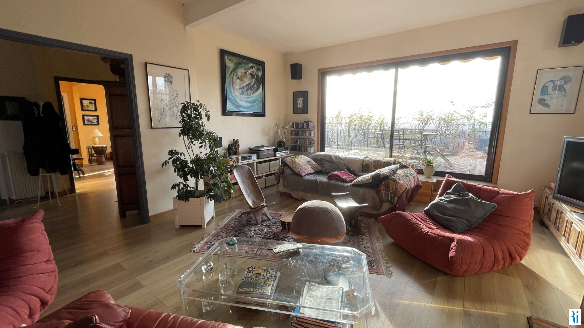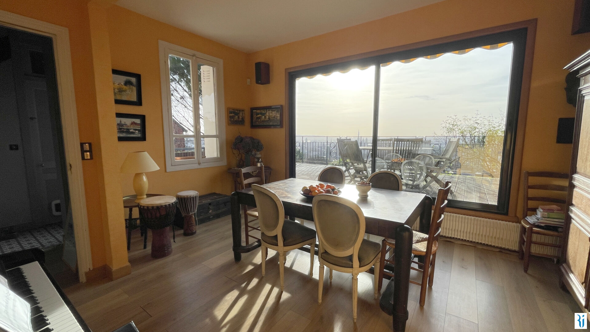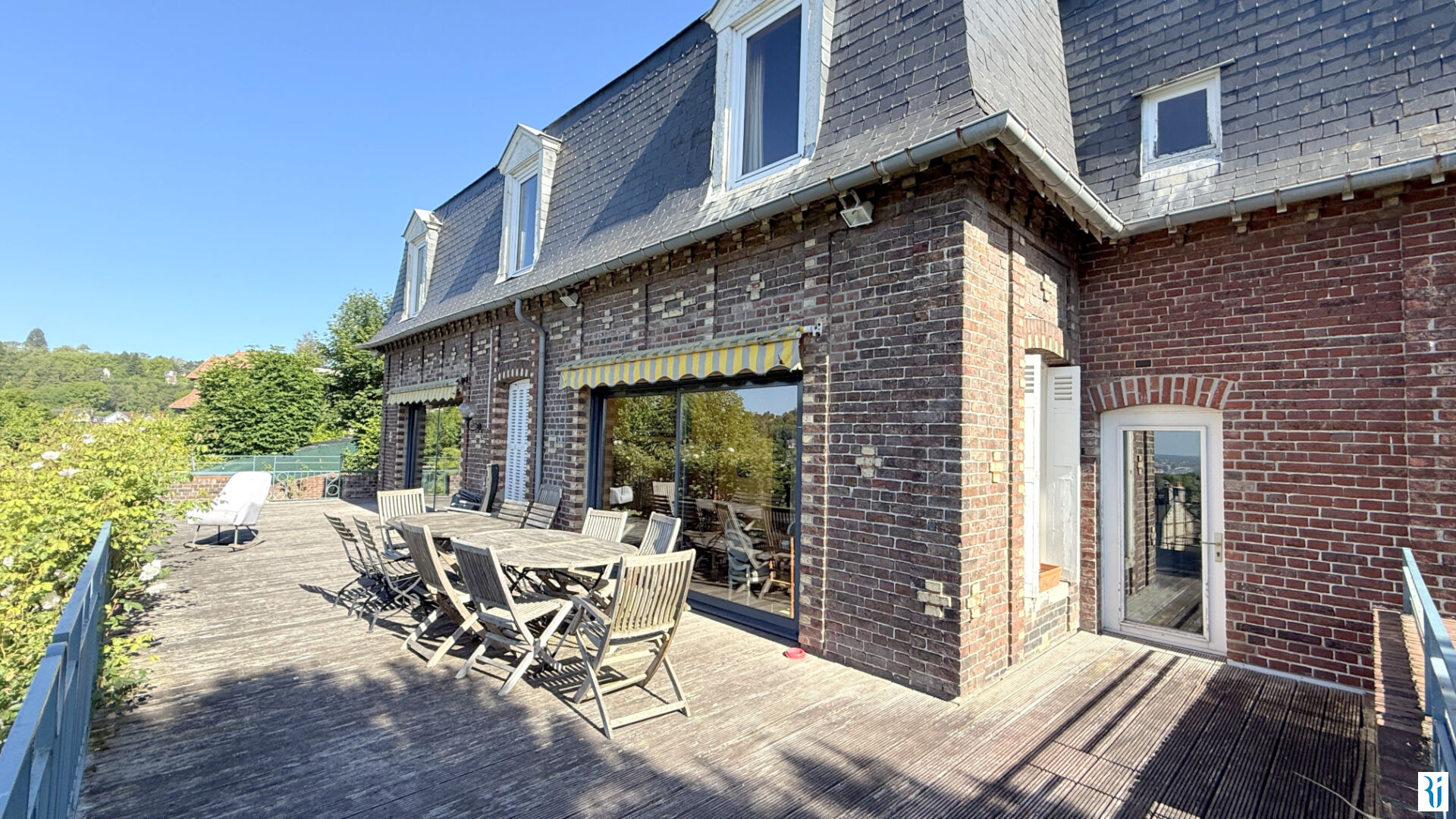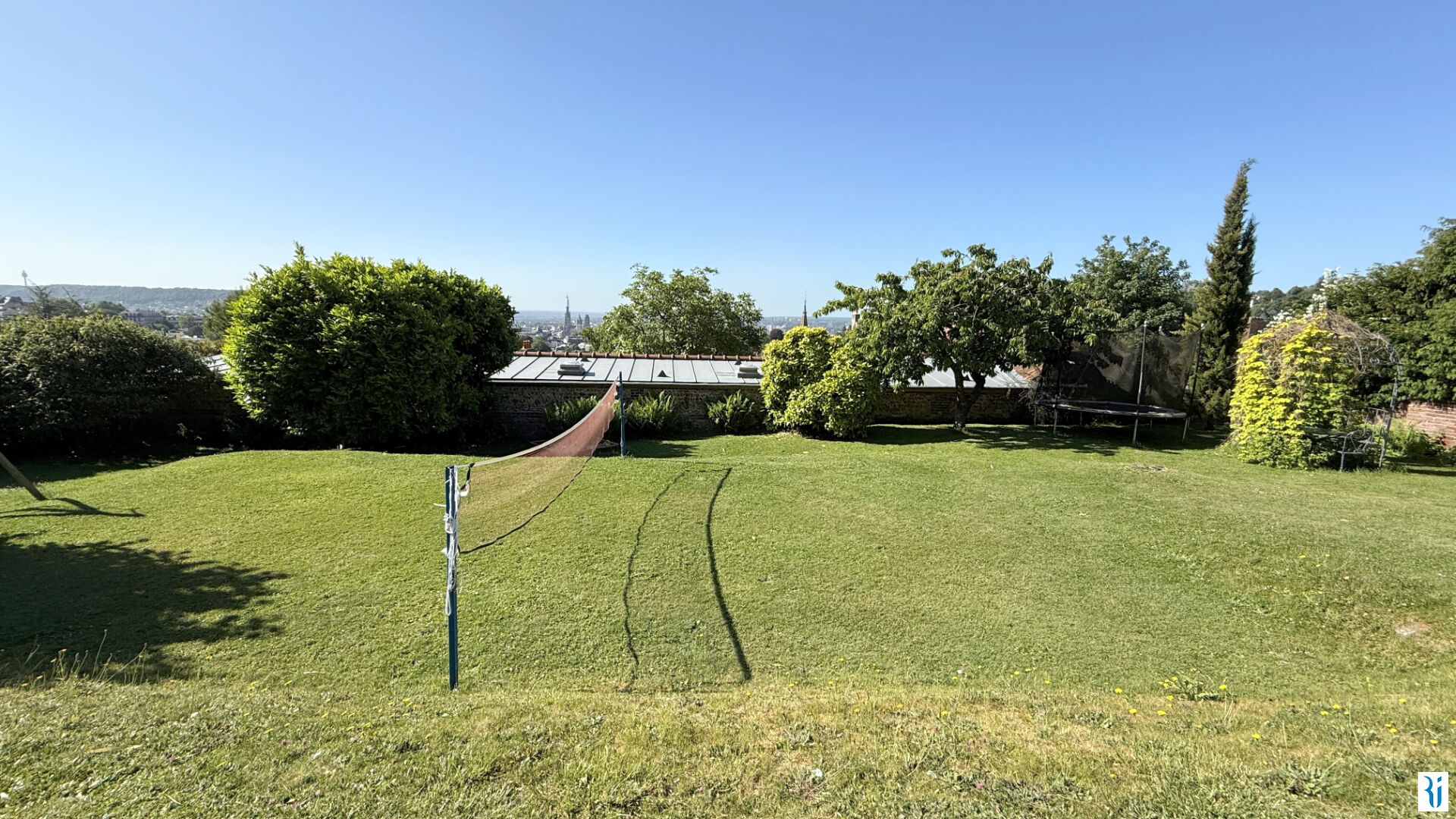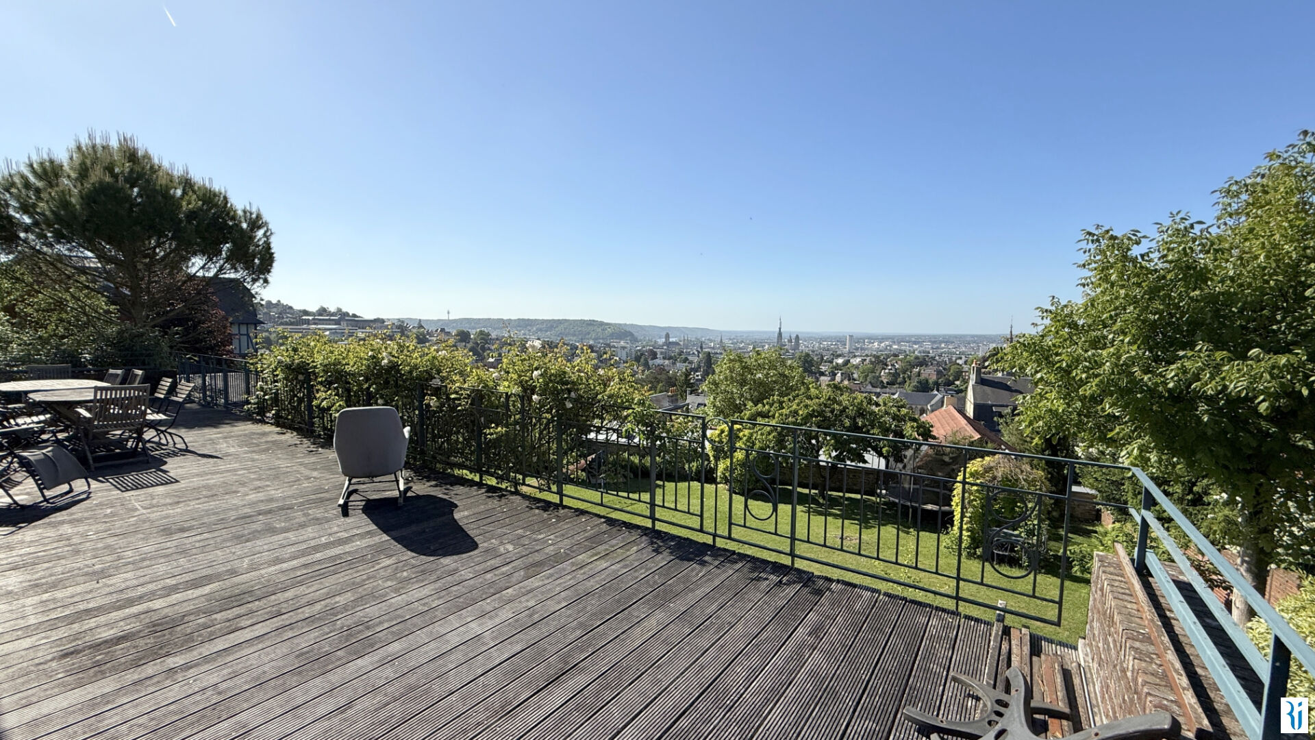 NOUVEAUTE. MONT SAINT AIGNAN, SAINT ANDRE / BULINS. LE CABINET SAUVAGE TRANSACTION VOUS PROPOSE A LA VENTE EN EXCLUSIVITE : SUPERBE ENVIRONNEMENT CALME ET RESIDENTIEL SUR LES HAUTEURS DE SAINT ANDRE, POUR CETTE PROPRIETE FAMILLIALE DE 222 M2 HABITABLES (265 M2 UTILES), OFFRANT UNE VUE IMPRENABLE SUR LE CENTRE HISTORIQUE DE ROUEN ET DISPOSANT D'UN VASTE JARDIN CLOS ET ARBORE DE 1050 M2. REZ DE CHAUSSEE: Entrée, lumineux salon de 34 m2 avec cheminée et donnant accès sur vaste terrasse en bois dominant le jardin, salle à manger de 18 m2, cuisine équipée, wc. 1 ER ETAGE: Palier, 3 Chambres, bureau, salle de bains, salle de douche, wc. 2 EME ETAGE: Grande chambre sous mansarde. REZ DE JARDIN: Studio indépendant de 30 M2 comprenant séjour, kitchenette, chambre, sdd, wc. Ainsi qu'une salle de jeux de 32 m2. Cave à vin , lingerie, pièce de rangement. PRECISIONS: Garage fermé et stationnement 2 voitures dans le jardin. Chauffage au gaz. Prévoir travaux de rafraichissement. NOTRE INSTINCT IMMOBILIER VOUS LA CONSEILLE POUR: Cadre exceptionnel avec sa vue a couper le souffle et disposant d'un vaste jardin pour cette maison Rare à la vente. Accès rapide à la gare de Rouen (20 min. à Pied) et aux écoles prisées du quartier. (4.94 % honoraires TTC à la charge de l'acquéreur.)
