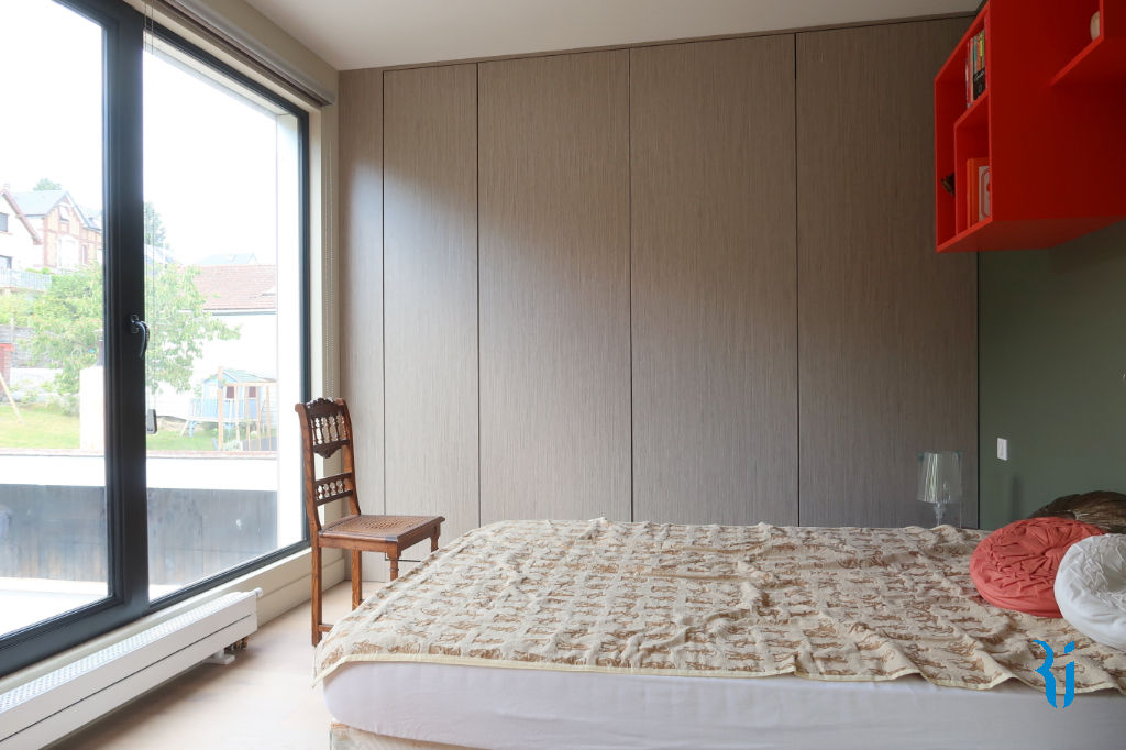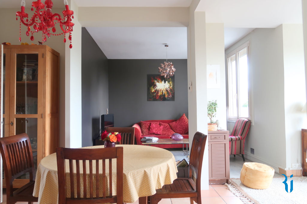 NOUVEAUTÉ, proposée en EXCLUSIVITÉ par le cabinet. Mont Saint Aignan, Saint André. Au pied de toutes les commodités et à seulement 15 min. à pied de la gare de Rouen, très belle maison individuelle contemporaine en excellent état d'environ 106 m2 hab, comprenant entrée, beau séjour lumineux avec poêle à bois, cuisine équipée, 3 chambres ou 2 chambres + 1 bureau dont une au rdc, salle de bains, salle de douche, 2 wc, rangements. Très joli jardin arboré plat en palier de 500 m2. garage et plusieurs dépendances. Environnement très calme, rare à la vente.