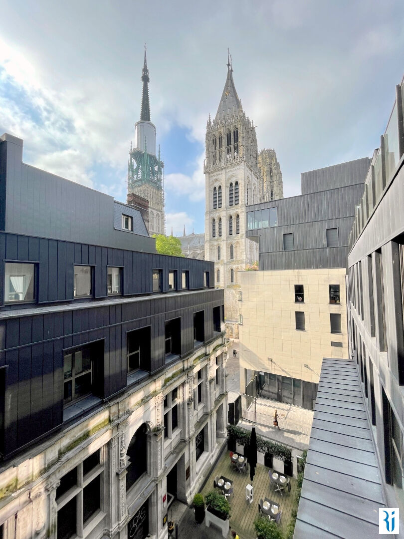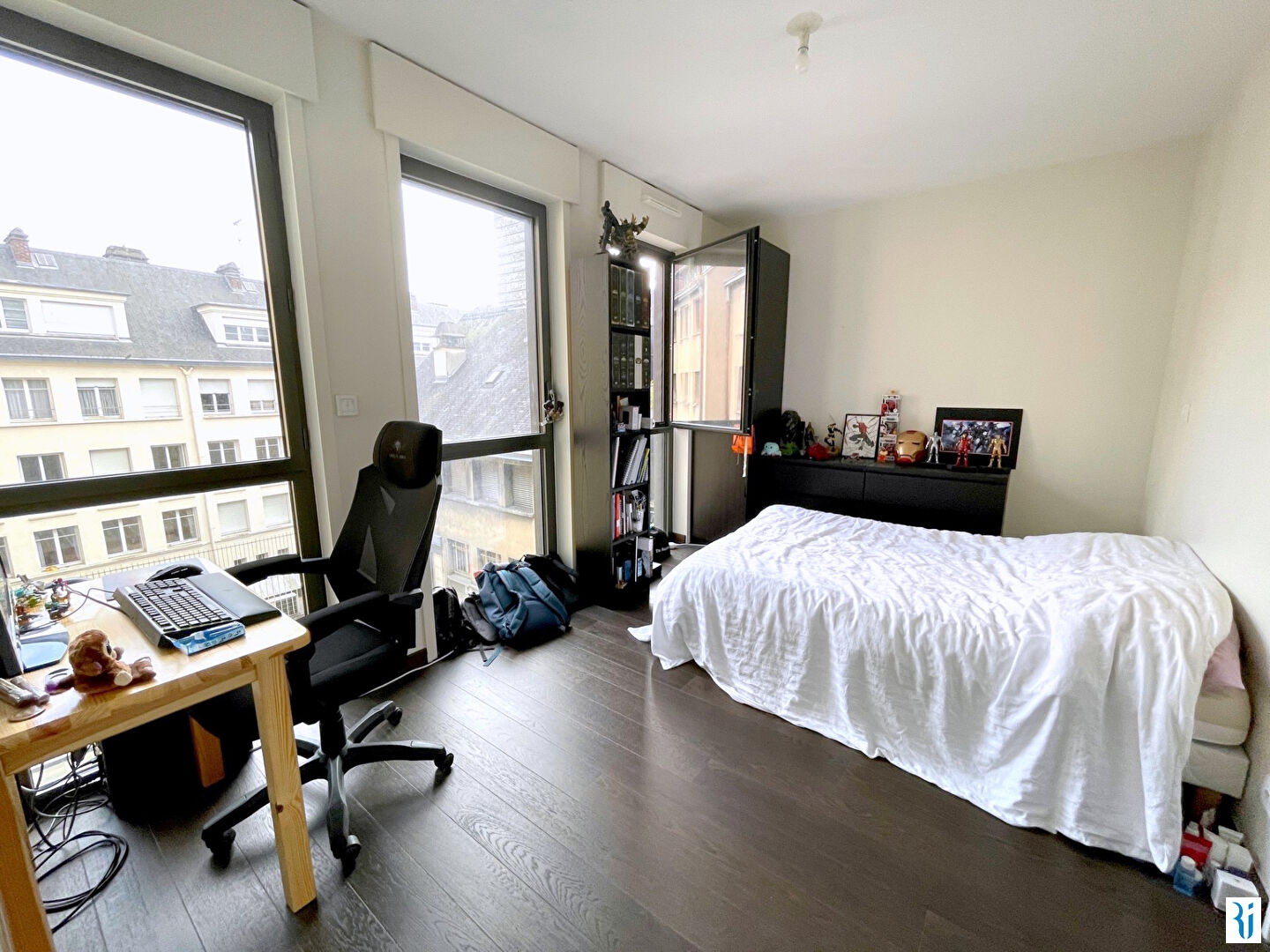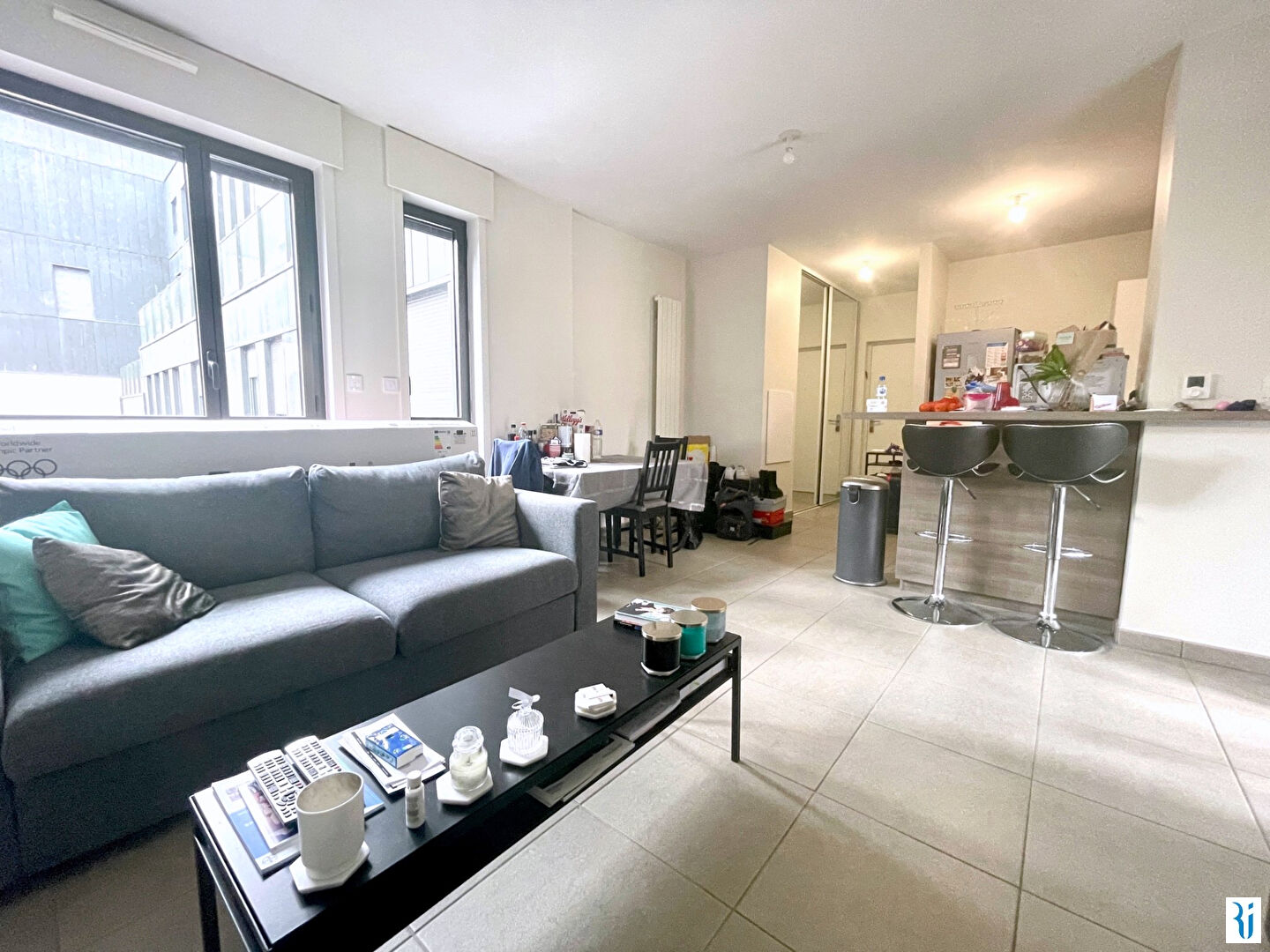 ROUEN CATHEDRALE - Dans une résidence de standing avec ascenseur construite en 2012 " Espace Monet Cathédrale" - Appartement 2 pièces d'une surface de 46m² idéalement situé proposant : Une entrée avec grand placard, cuisine équipée ouverte sur séjour, belle chambre donnant accès à la salle de douche et wc - PARKING COUVERT - Actuellement loué en bail non meublé 652 euros/mois + 50 euros de charges - (4.89 % honoraires TTC à la charge de l'acquéreur.) Copropriété de 51 lots (). Charges annuelles : 1140 euros.