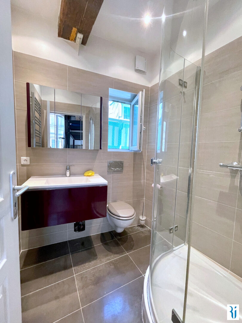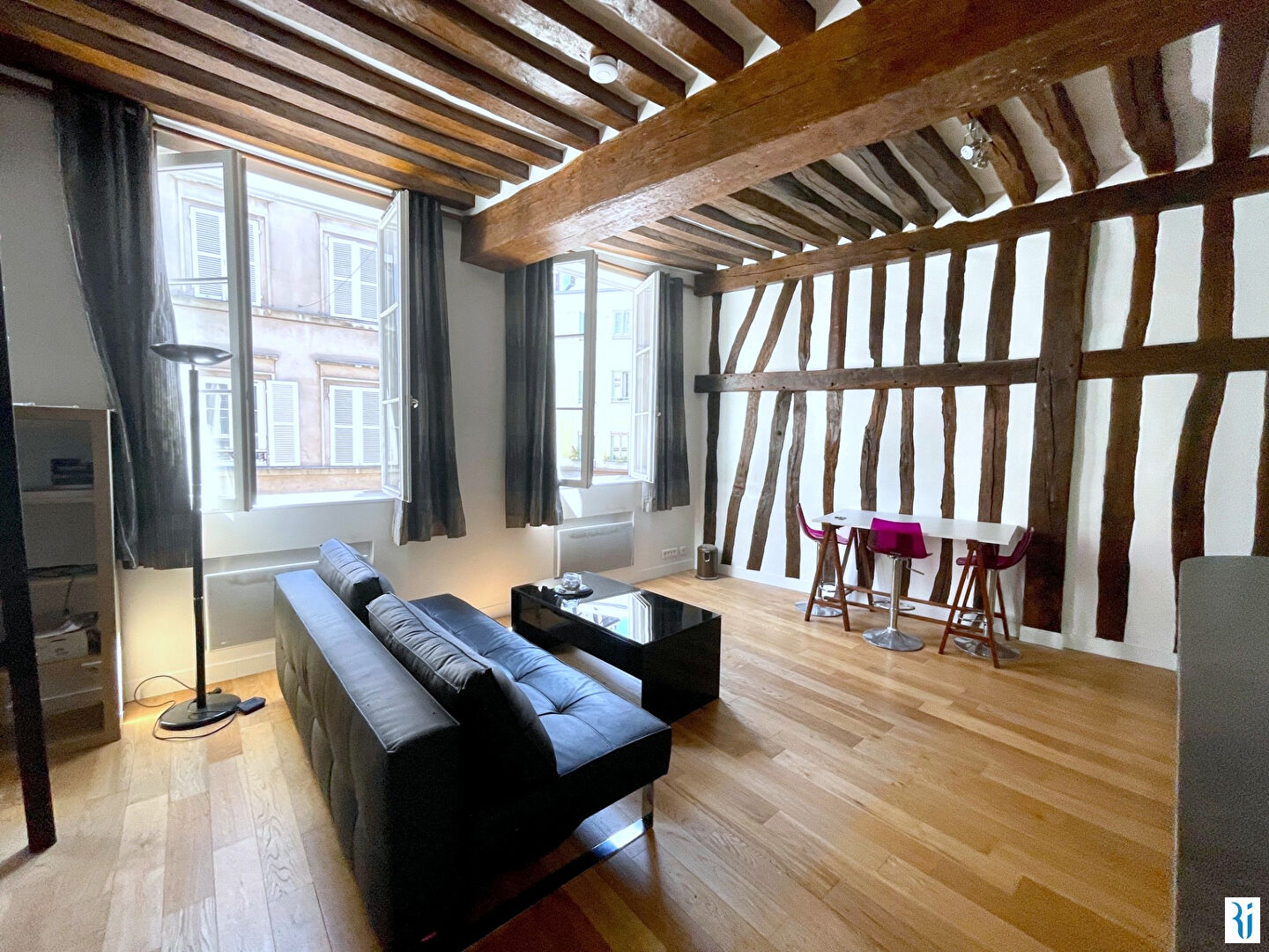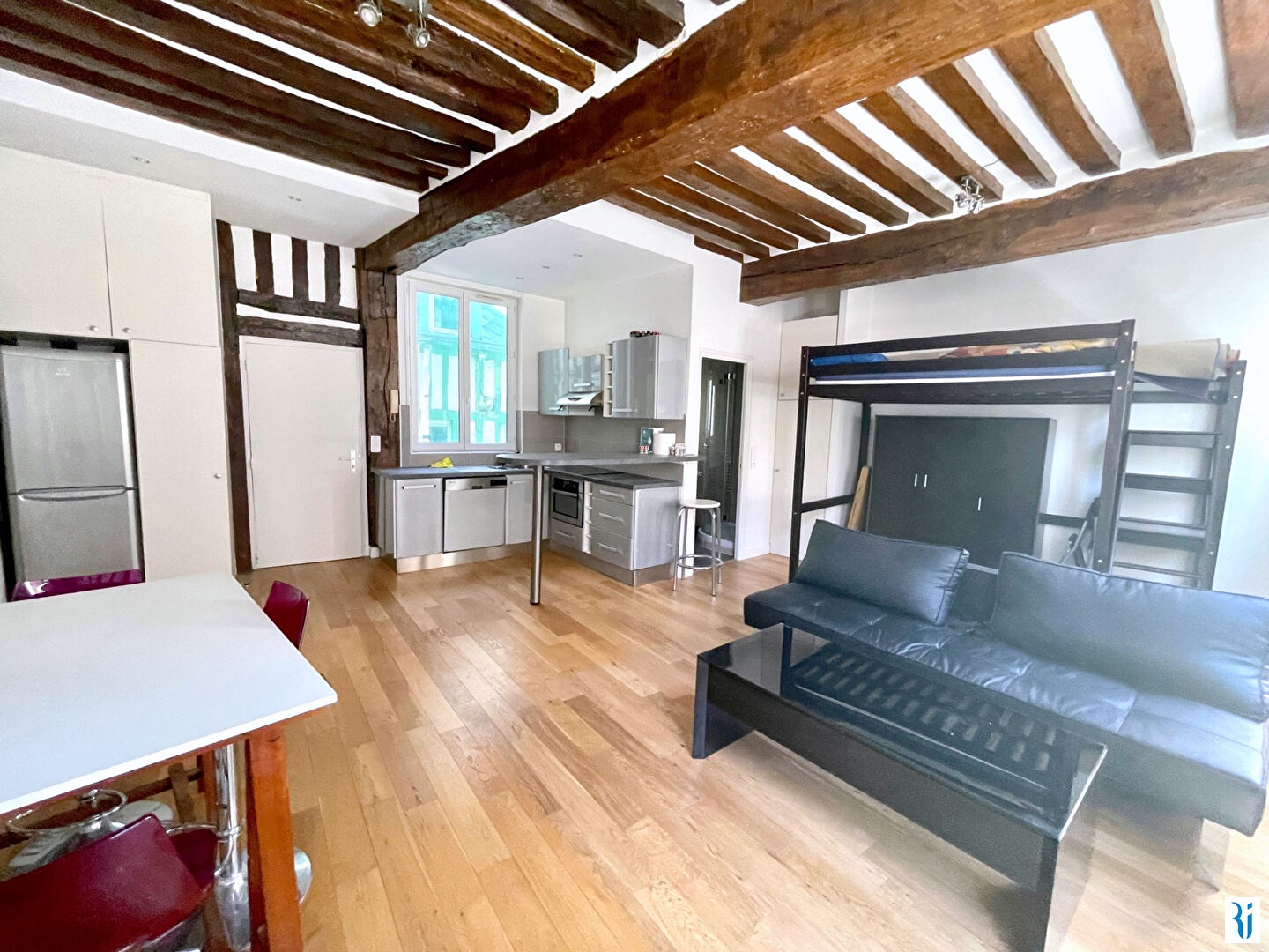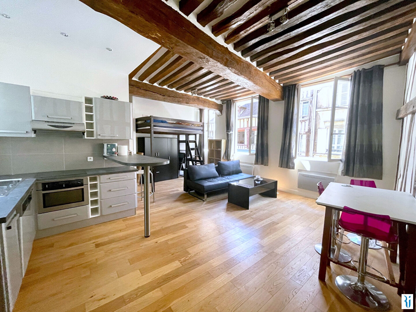 ROUEN CENTRE VIEUX MARCHE - EN EXCLUSIVITE - Appartement de 35m² facilement transformable en 2 pièces en parfait état, il comprend: Une belle pièce principale avec cuisine équipée moderne, belle salle de douche avec wc - travaux récents - parquets massifs et hauteur sous plafond - (5.17 % honoraires TTC à la charge de l'acquéreur.) Copropriété de 10 lots (Pas de procédure en cours). Charges annuelles : 600 euros.
