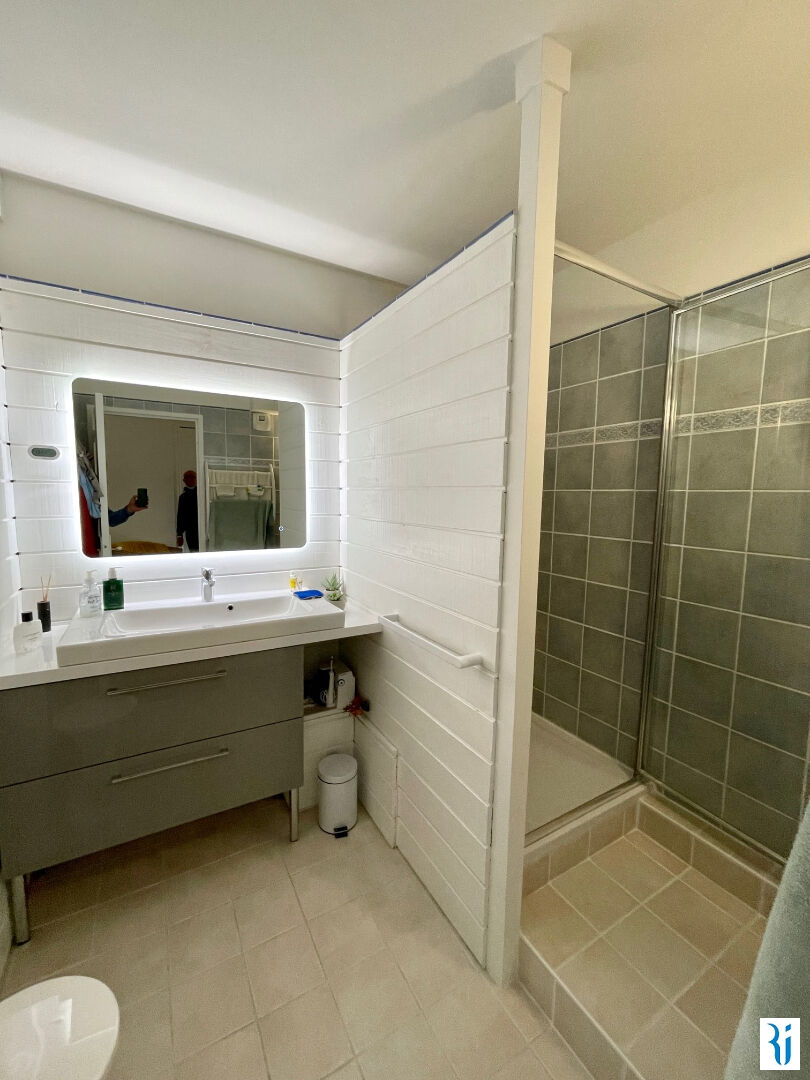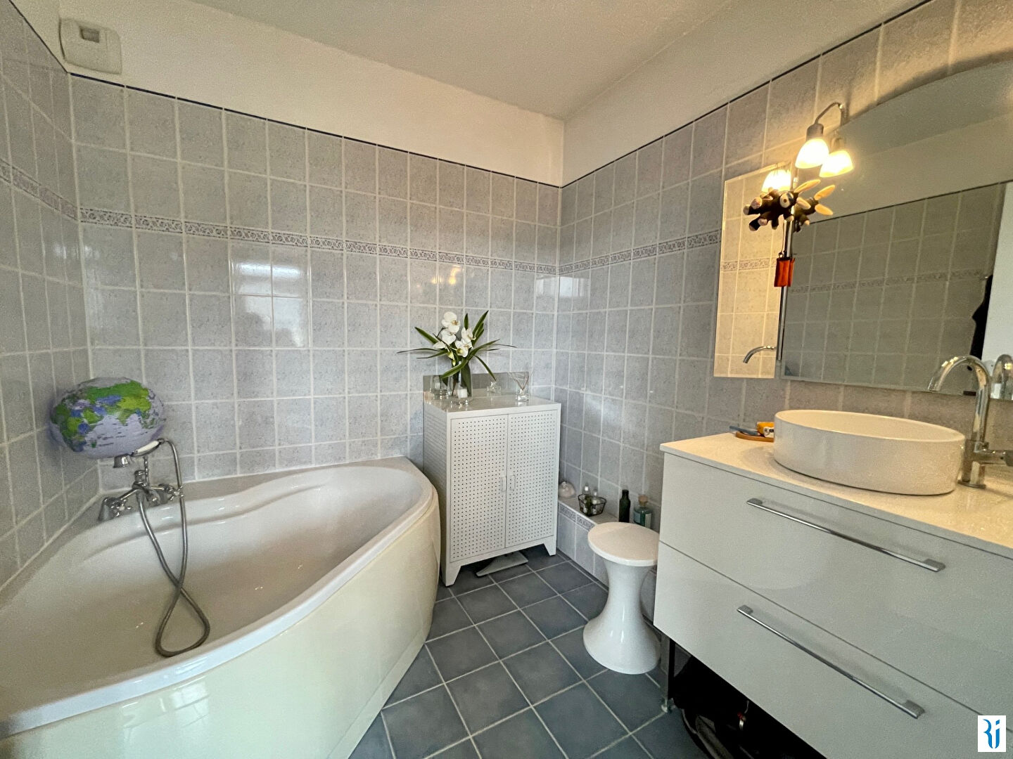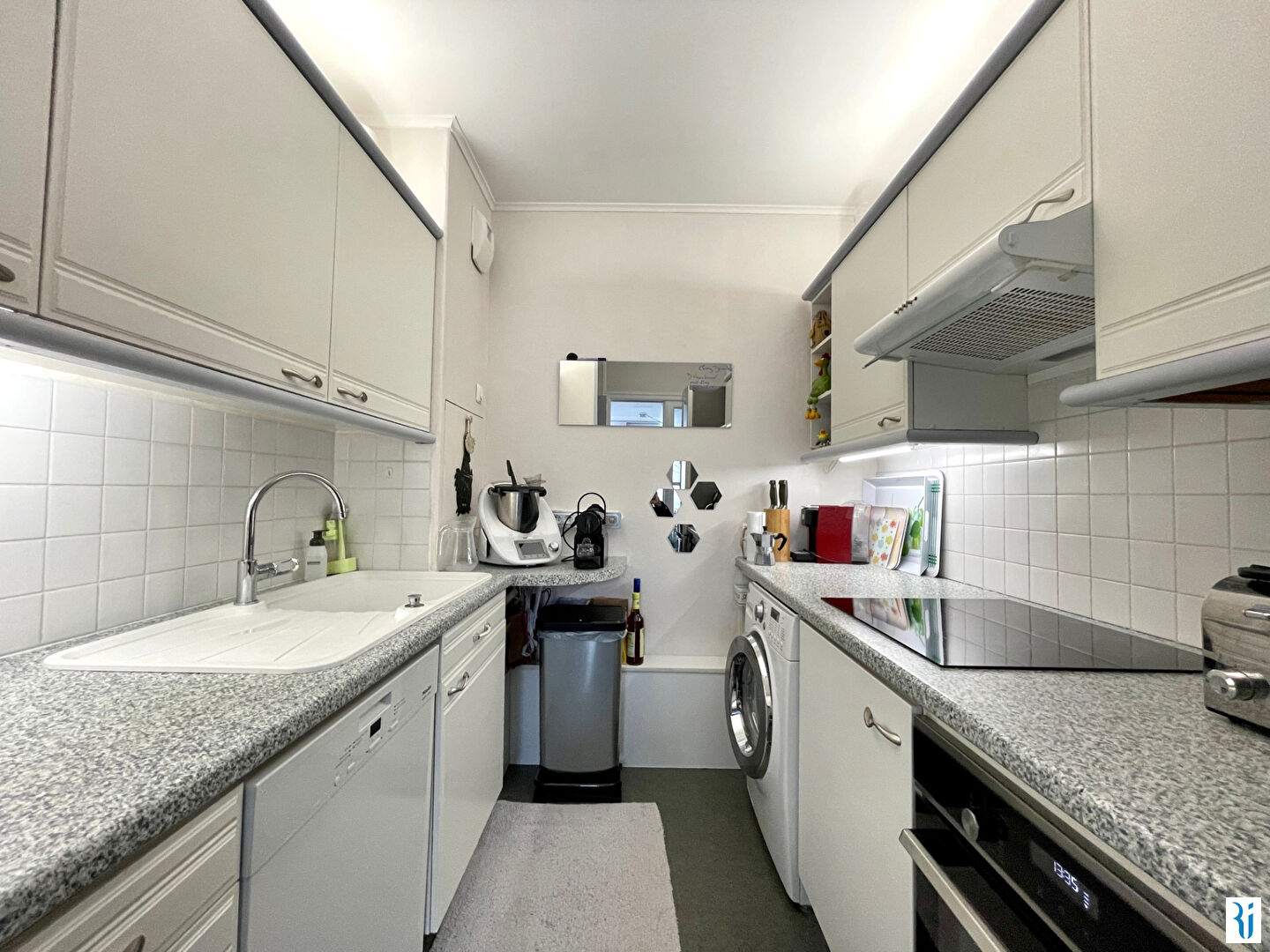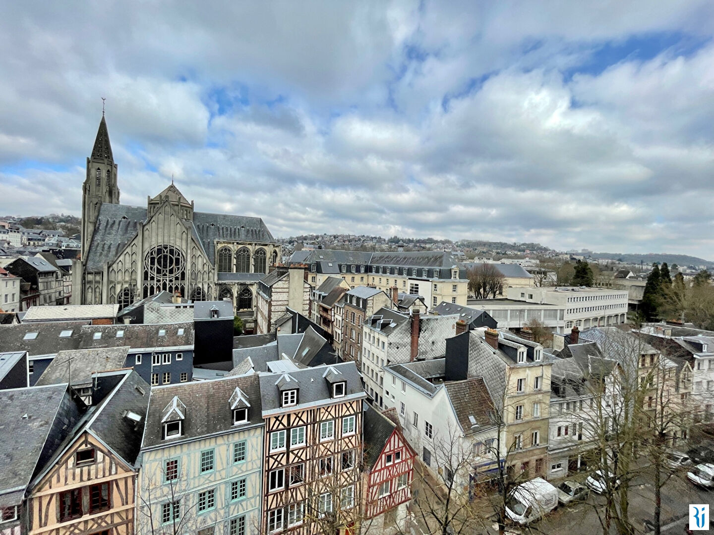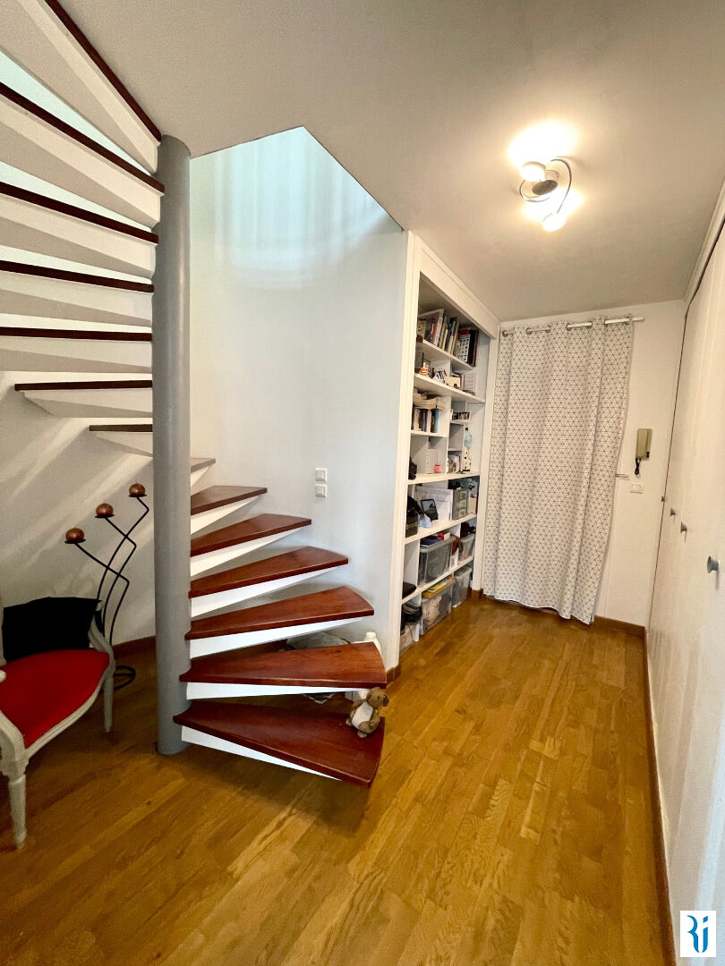 ROUEN CENTRE Mairie - EN EXCLUSIVITE - Appartement au dernier étage avec ASCENSEUR d'une surface de106m² + 28m² de TERRASE exposée sud avec vue dégagée comprenant: entrée, salon et salle à manger, cuisine aménagée; En duplex 3 chambres dont une avec salle de bains privative, salle de douche, dressing - accès à la terrasse - cave - PARKING COUVERT pour 2 voitures - chauffage, eaux, gardien compris dans les charges - produit rare.... (4.86 % honoraires TTC à la charge de l'acquéreur.) Copropriété de 337 lots (). Charges annuelles : 3180 euros.