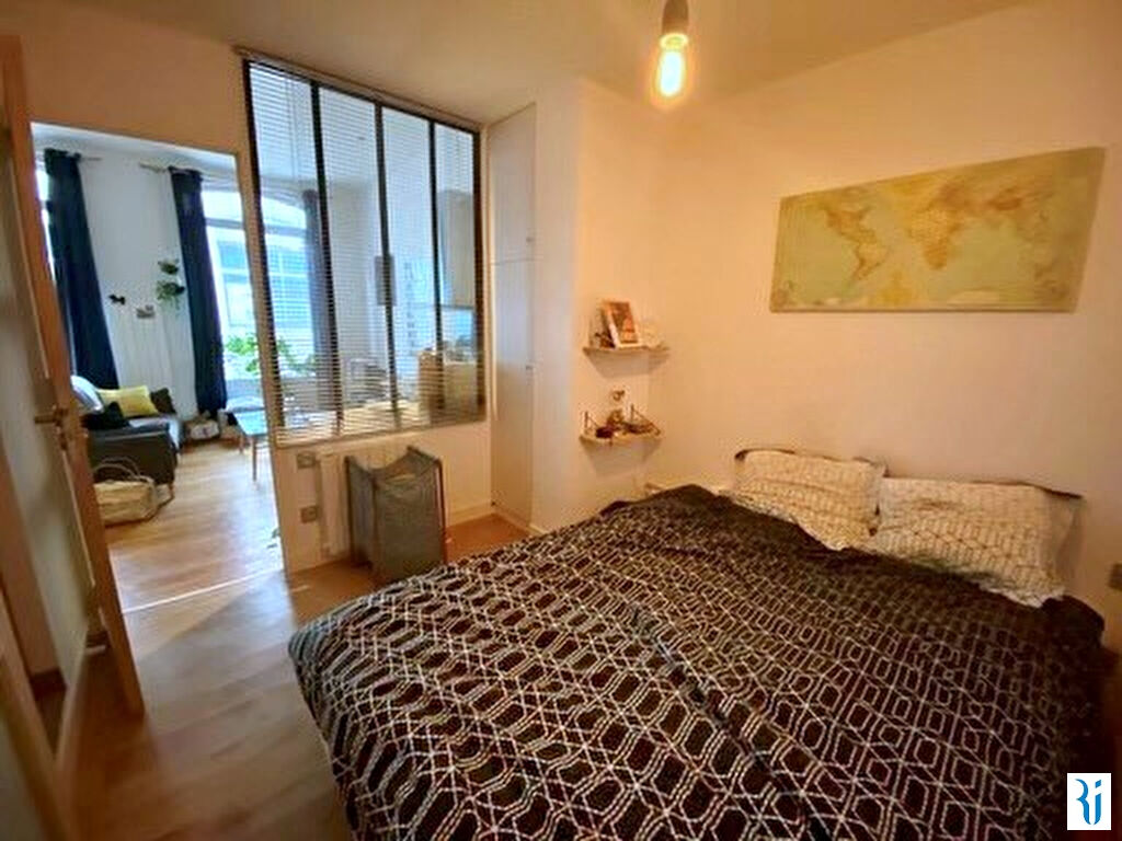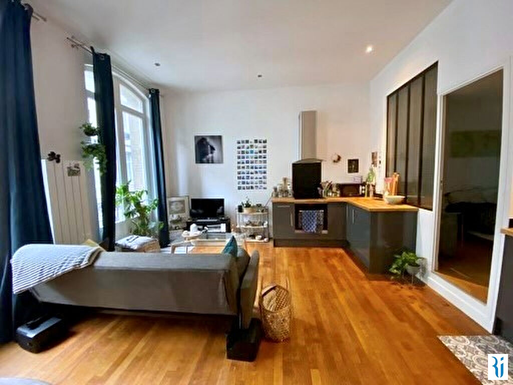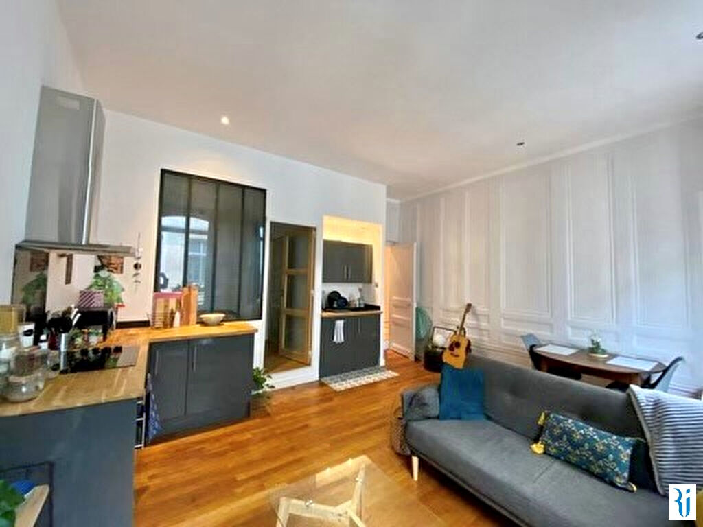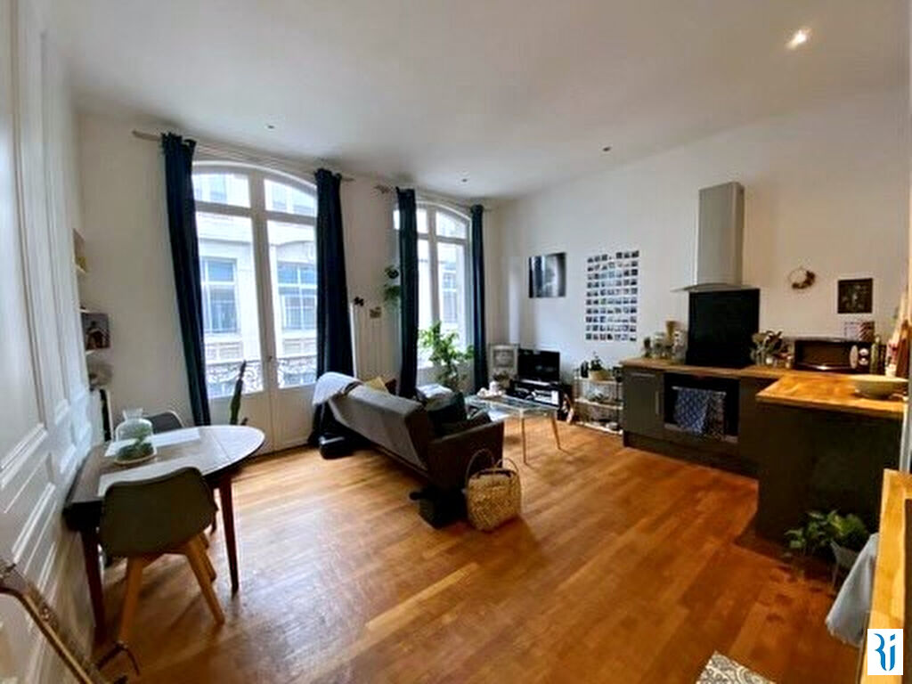 ROUEN CENTRE - EN EXCLUSIVITE - Entre Vieux Marché et Préfecture - Très beau 2 pièces situé au 1er étage d'un bel immeuble bourgeois composé d'une entrée, un salon/cuisine ouverte très lumineux avec petit balcon, une chambre avec salle de douche, wc séparé, placards - bonne distribution et état impeccable - (5.00 % honoraires TTC à la charge de l'acquéreur.) Copropriété de 18 lots (). Charges annuelles : 600 euros.