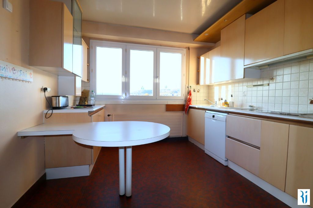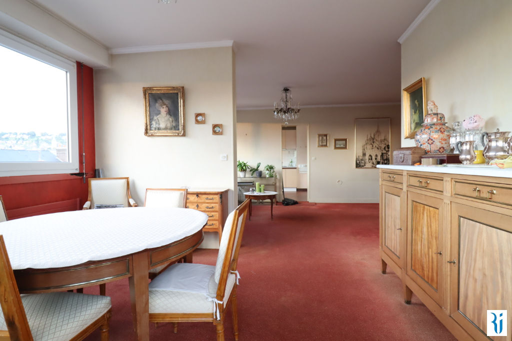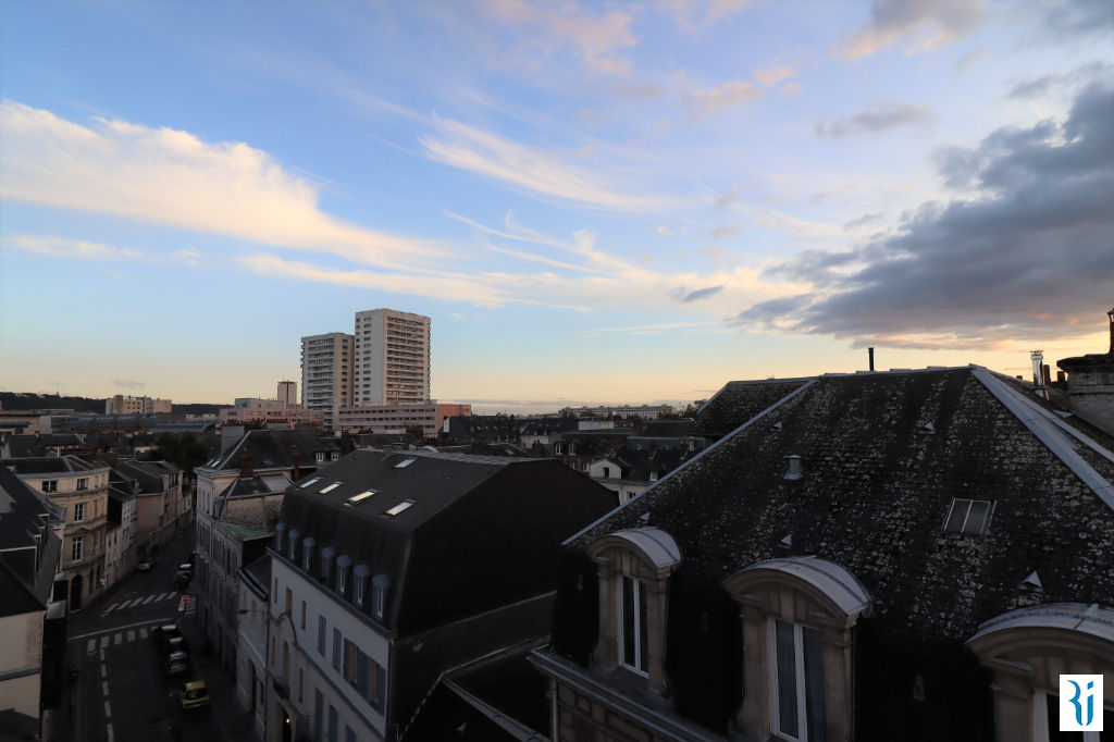 ROUEN CENTRE Proche place Henri IV et Vieux Marché- EN EXCLUSIVITE - Au dernier étage de l'immeuble avec ASCENSEUR - Appartement de 123m² très lumineux avec ses 3 expositions comprenant: entrée, cuisine équipée et lingerie, beau séjour de 46m² avec balcon, 3 chambres, grande salle de bains avec baignoire et douche, 2 wc - PARKING couvert et cave - Charges avec chauffage, eaux.... Copropriété de 23 lots (). Charges annuelles : 3240 euros.