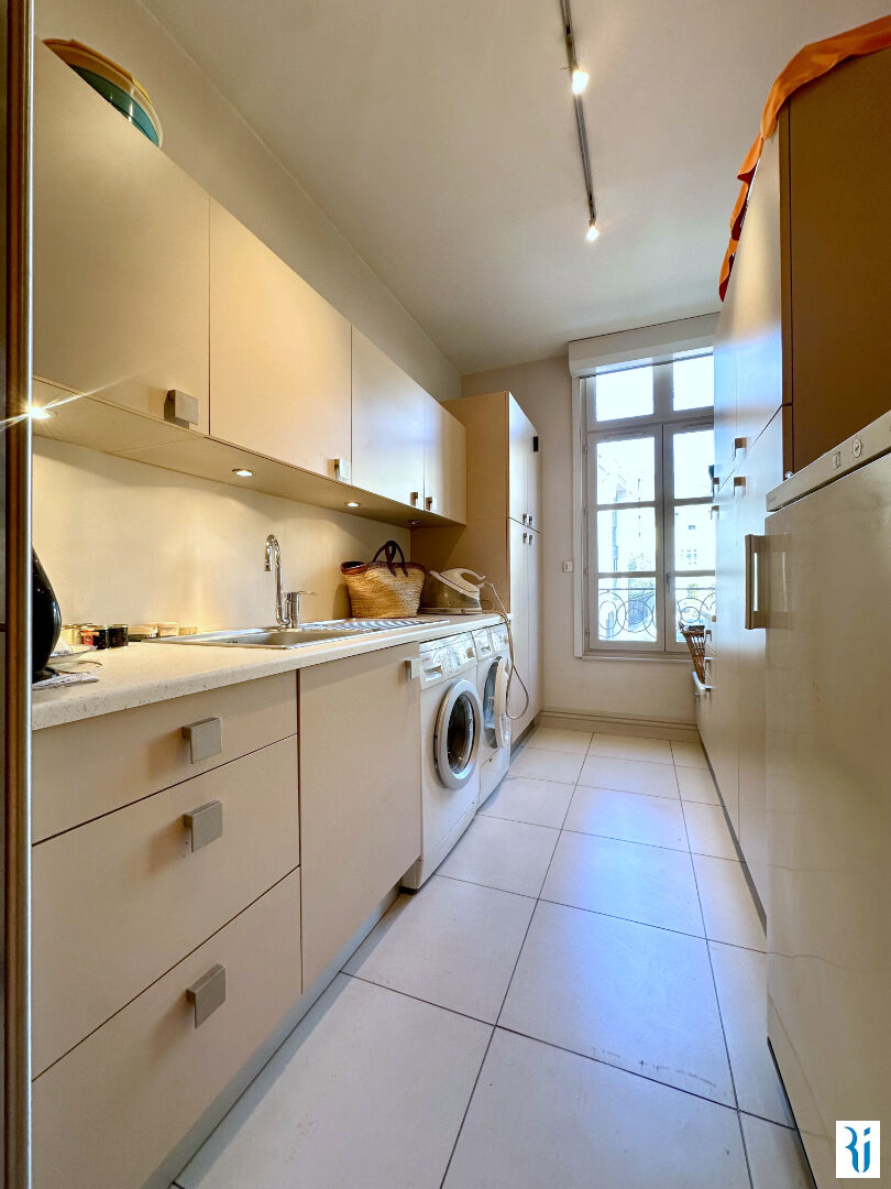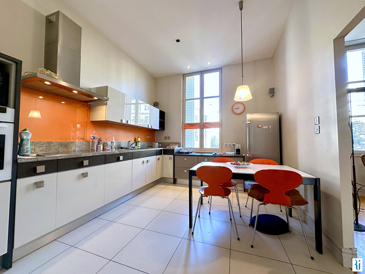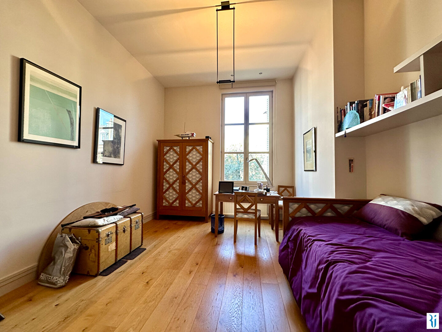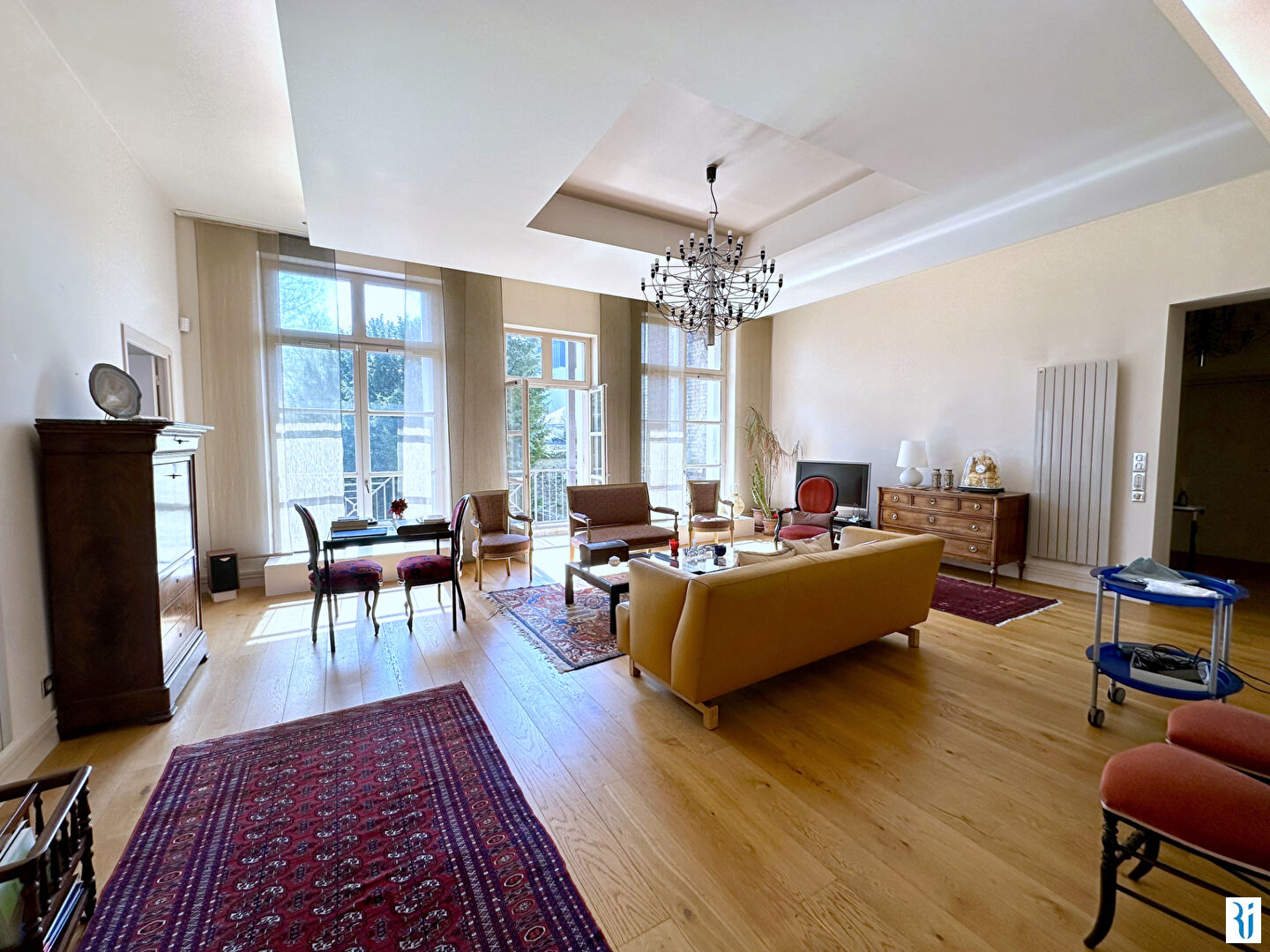 ROUEN CENTRE SECTEUR GARE/SQUARE VERDREL SAUVAGE TRANSACTION VOUS PROPOSE UN APPARTEMENT D'EXCEPTION IDEALEMENT SITUE DANS UN IMMEUBLE DE STANDING AVEC ASCENSEUR COMPRENANT : BELLE ENTREE, SALON ET SALLE A MANGER DONNANT SUR UN GRAND BALCON EXPOSE SUD, CUISINE EQUIPEE AVEC ESPACE REPAS, LINGERIE/CELLIER AMENAGE, 3 CHAMBRES DONT UNE PARENTALE AVEC DRESSING ET SALLE DE DOUCHE, GRANDE SALLE DE BAINS, 2 WC INDEPENDANTS, CAVE, EMPLACEMENT DE PARKING PRECISIONS : Chauffage individuel électrique par radiateurs, double vitrage bois, très bonne isolation, belle hauteur sous plafonds, nombreux placards, très belles prestations NOTRE INSTICT IMMOBILIER VOUS LE CONSEILLE POUR : Son caractère unique, ses volumes, sa luminosité, son emplacement exceptionnel (3.92 % honoraires TTC à la charge de l'acquéreur.) Copropriété de 5 lots (Pas de procédure en cours). Charges annuelles : 3600 euros.