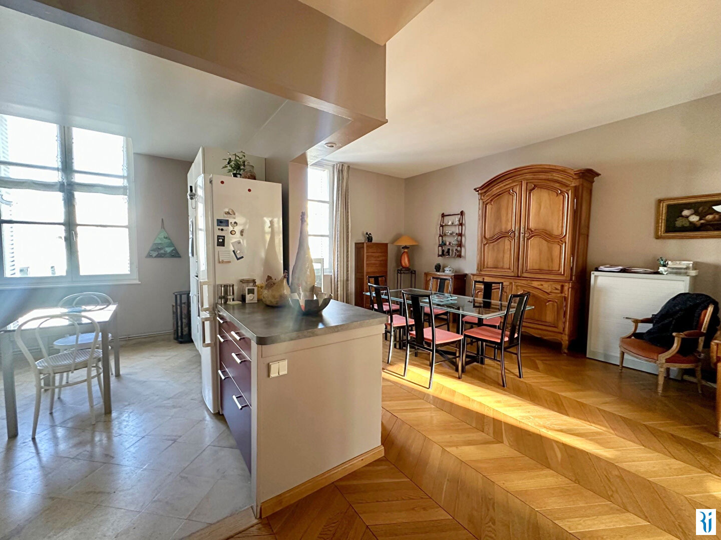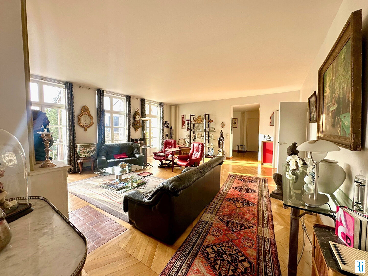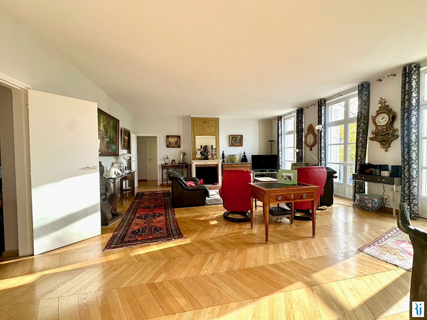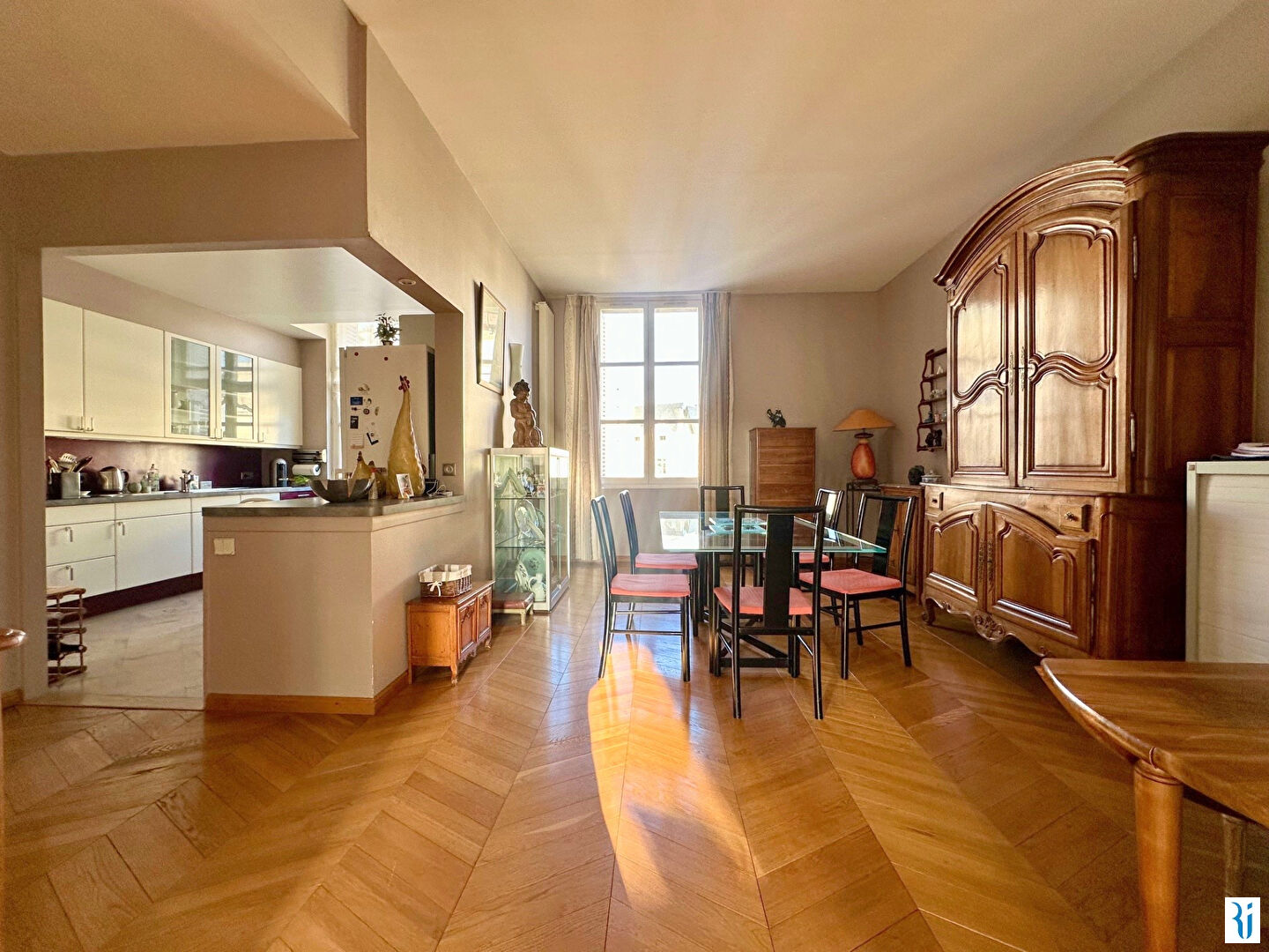 ROUEN CENTRE SECTEUR GARE/SQUARE VERDREL SAUVAGE TRANSACTION VOUS PROPOSE UN APPARTEMENT D'EXCEPTION IDEALEMENT SITUE DANS UNE RUE CALME AVEC VUES DEGAGEES COMPRENANT : ENTREE AVEC CELLIER, SALON ET SALLE A MANGER DONNANT SUR UN BAU BALCON EXPOSE SUD, CUISINE EQUIPEE SEMI-OUVERTE, 3 GRANDES CHAMBRES DONT UNE AVEC SALLE DE BAINS PRIVATIVE, SALLE DE DOUCHE, 2 WC, CHAUFFERIE, CAVE, EMPLACEMENT DE PARKING PRECISIONS : Chauffage individuel gaz condensation 2023, double vitrage bois, très bonne isolation, cheminée fonctionnelle, belle hauteur sous plafonds NOTRE INSTICT IMMOBILIER VOUS LE CONSEILLE POUR : Sa rareté, ses volumes, sa luminosité grâce aux grandes fenêtres traversantes, son caractère unique (4.14 % honoraires TTC à la charge de l'acquéreur.) Copropriété de 5 lots (Pas de procédure en cours). Charges annuelles : 2760 euros.