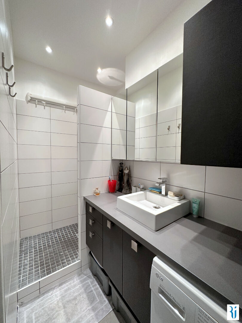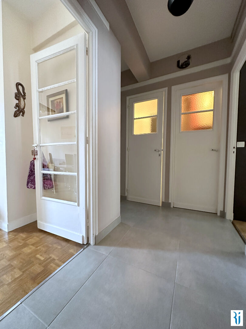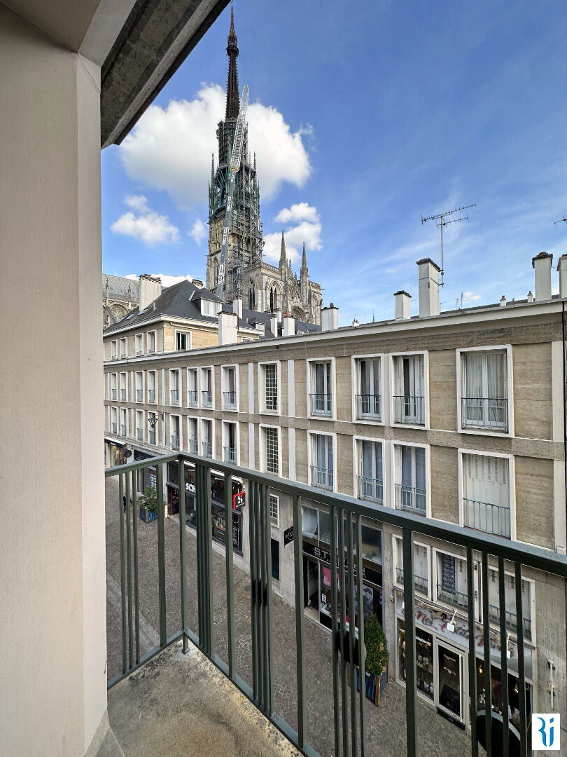 ROUEN CENTRE CATHEDRALE EN EXCLUSIVITE Appartement 3 pièces idéalement situé au 3ème étage de l'immeuble comprenant: Entrée, salon avec petit balcon, cuisine équipée, 2 chambres avec placards, salle de douche, wc - cave - Parfait état Les charges comprennent le chauffage et l'eau froide (5.41 % honoraires TTC à la charge de l'acquéreur.) Copropriété de 5 lots (Pas de procédure en cours). Charges annuelles : 2152 euros.
