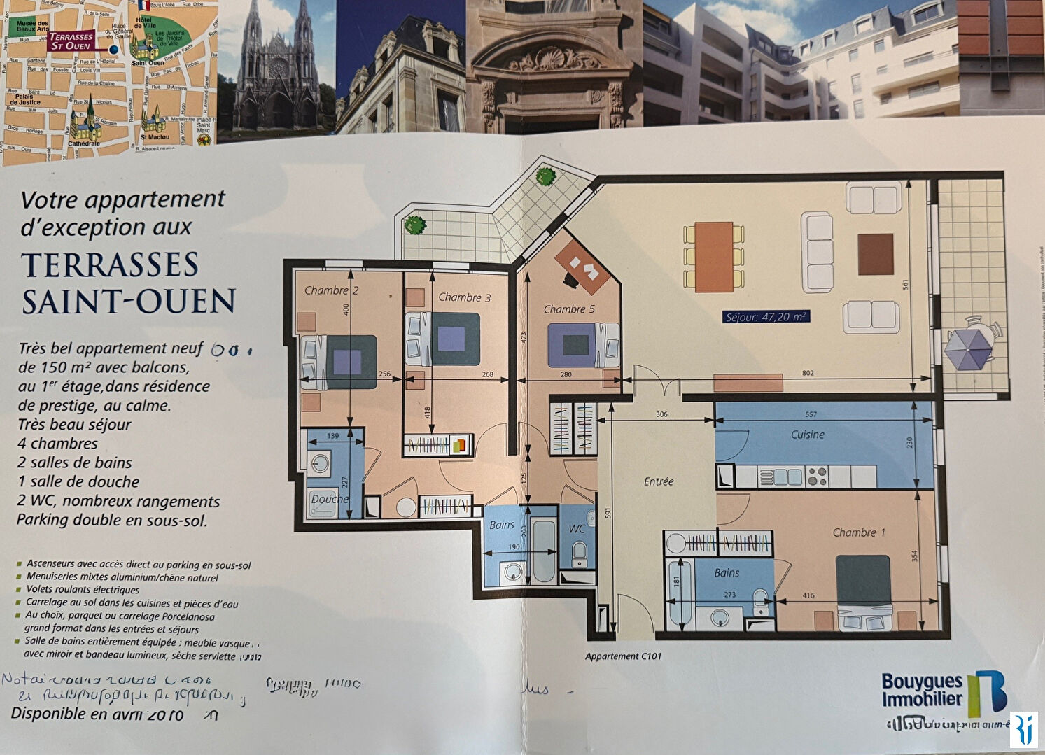 ROUEN DROITE SECTEUR HOTEL DE VILLE SAUVAGE TRANSACTION VOUS PROPOSE EN EXCLUSIVITE UN TRES CONFORTABLE APPARTEMENT 6 PIECES AU SEIN D'UNE RESIDENCE DE STANDING CONSTRUITE EN 2010" LES TERRASSES SAINT OUEN" AVEC ASCENSEUR ET GARDIEN COMPRENANT : UNE VASTE ENTREE, SEJOUR DE 47M² DONNANT ACCES A UNE TERRASSE COTE EST EN UN BALCON COTE OUEST, UNE CUISINE EQUIPEE, 4 CHAMBRES, 3 SALLES DE BAINS DONT 2 PRIVATIVES, RANGEMENTS, UN EMPLACEMENT DE PARKING POUR 2 VEHICULES PRECISIONS : Chauffage individuel électrique, fenêtres en double vitrage bois/alu, volets roulants électriques NOTRE INSTINCT IMMOBILIER VOUS LE CONSEILLE POUR : Sa situation idéale au coeur du centre ville, ses parties communes de qualité, son double stationnement, ses deux balcons. son calme (4.35 % honoraires TTC à la charge de l'acquéreur.) Copropriété de 95 lots (Pas de procédure en cours). Charges annuelles : 2340 euros.