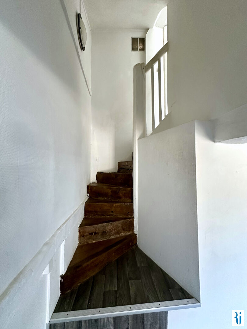 ROUEN DROITE Rue Beauvoisine SAUVAGE TRANSACTION VOUS PROPOSE EN EXCLUSIVITE UN APPARTEMENT 2 PIECES DUPLEX AU DERNIER ETAGE DE L'IMMEUBLE COMPRENANT : UNE PIECE PRINCIPALE AVEC KITCHENETTE EQUIPEE ET PLACARD, UNE SALLE DE BAINS AVEC WC, UNE CHAMBRE A L'ETAGE PRECISIONS : Double vitrage, chauffage électrique, amélioration du DPE possible par isolation intérieure/ventilation NOTRE INSTINCT POUR LE CONSEILLE POUR sa situation au calme au dernier étage, sa distribution (7.35 % honoraires TTC à la charge de l'acquéreur.) Copropriété de 8 lots (Pas de procédure en cours). Charges annuelles : 540 euros.
