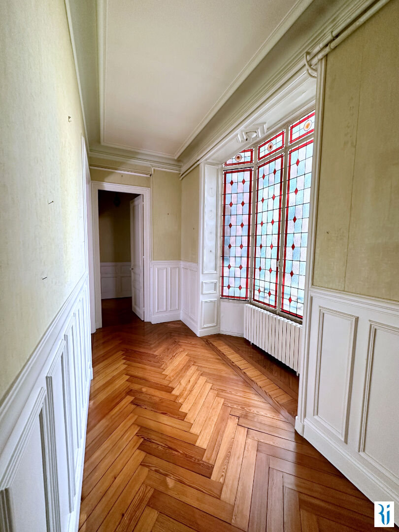 ROUEN GARE - EN EXCLUSIVITE Bel appartement dans un immeuble haussmannien avec ascenseur à 2 pas de la gare comprenant: Une entrée/dégagement, un vaste séjour, une cuisine indépendante, 3 grandes chambres, une salle de bains, placards - grande cave - Possibilité de 2 stationnements en + à proximité immédiate Conviendrait parfaitement pour votre résidence principale ou vos bureaux Prévoir rafraichissements (4.79 % honoraires TTC à la charge de l'acquéreur.) Copropriété de 13 lots (Pas de procédure en cours). Charges annuelles : 1800 euros.