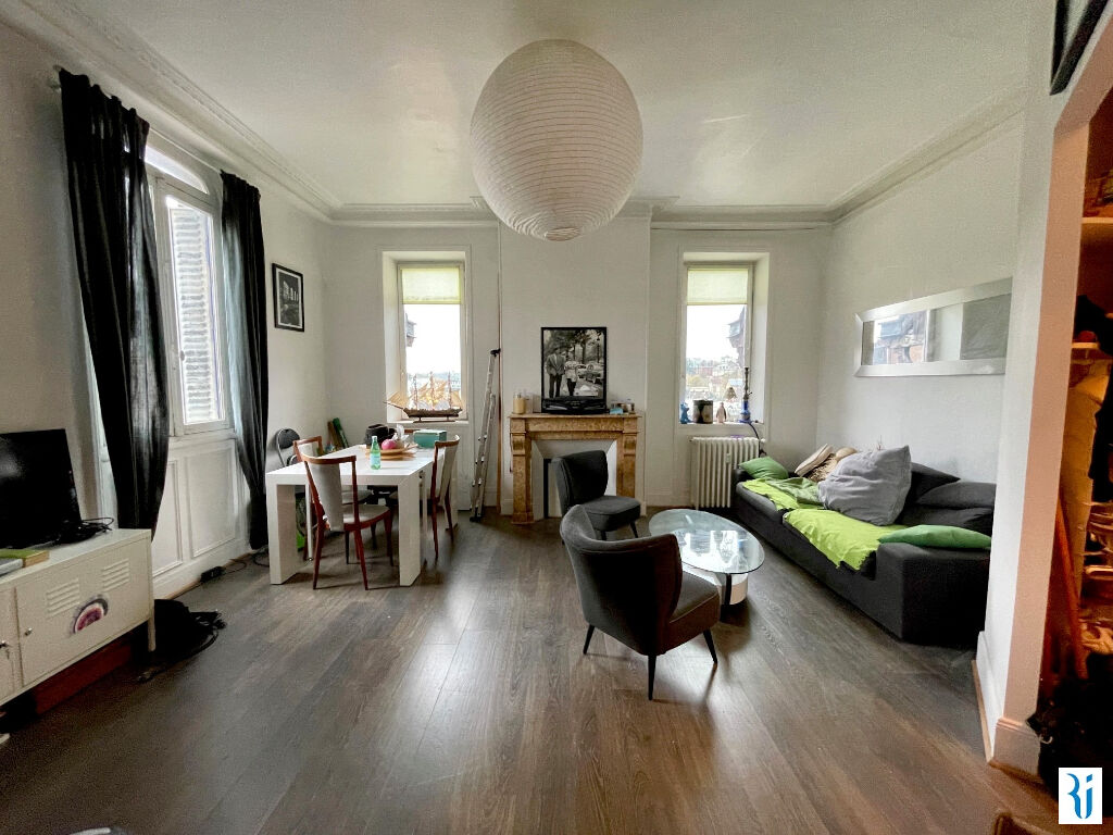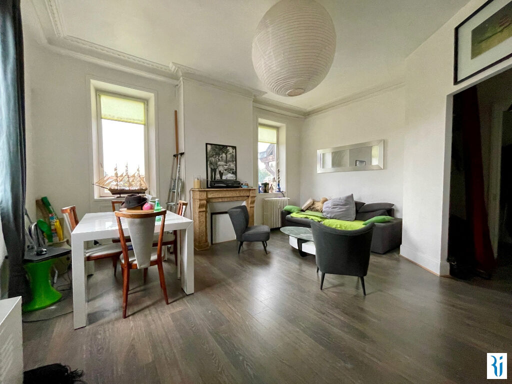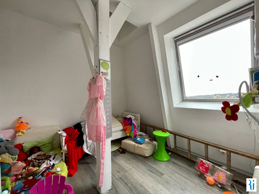 ROUEN GARE - EN EXCLUSIVITE - Appartement duplex situé au dernier étage d'une belle propriété bourgeoise d'une surface d'environ 75m² au sol - 62m² habitables - offrant : une entrée, un séjour lumineux, une cuisine équipée; à l'étage: une belle chambre et 2 autres pièces (couchage + bureau), salle de douche, 2 wc - Environnement calme et paisible - Jardin commun - Les charges comprennent le chauffage et l'eau froide (5.00 % honoraires TTC à la charge de l'acquéreur.) Copropriété de 32 lots (). Charges annuelles : 2040 euros.