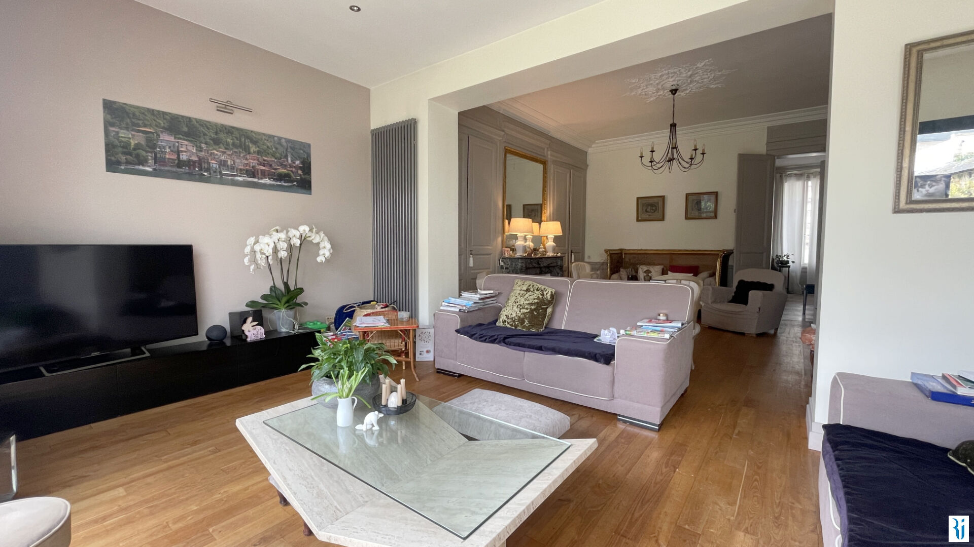 ROUEN QUARTIER GARE. LE CABINET SAUVAGE TRANSACTION VOUS PROPOSE A LA VENTE : IDEALEMENT SITUEE AU PLUS PROCHE DE LA GARE, ECOLES ET CENTRE VILLE A PIED, JOLIE MAISON DE CARACTERE MILIEU 19 EME PLEINE DE CHARME DE 263 M2 HABITABLES SUR JARDIN PLAT ET CLOS DE 326 M2. REZ DE CHAUSSEE: Hall d'entrée, vastes pièces de réceptions composées d'un salon de 40 m2 donnant directement sur la terrasse et jardin plat et clos de mur, ainsi que d'une salle à manger de 21 m2, cuisine équipée, bureau ou vestiaire, wc. 1 ER ETAGE: palier, 3 spacieuses chambres, salle de bains, salle de douche privée, wc. 2 EME ETAGE: palier, 3 chambres, bureau ou chambre supplémentaire, dressing, salle de douche avec wc. GRENIER accessible pouvant être aménagé si besoin. PRECISIONS: 1 place de parking privé devant la maison à la location (78 euros/mois), cave en sous sol, petite dépendance au fond du jardin. Maison parfaitement entretenue, fenêtres double vitrage, chauffage au gaz. NOTRE INSTINCT IMMOBILIER VOUS LA CONSEILLE POUR: Emplacement de choix au plus proche de la GARE SNCF, tout en profitant d'une confortable maison familiale avec ravissant jardin et d'un très bon bilan énergétique. (3.92 % honoraires TTC à la charge de l'acquéreur.)