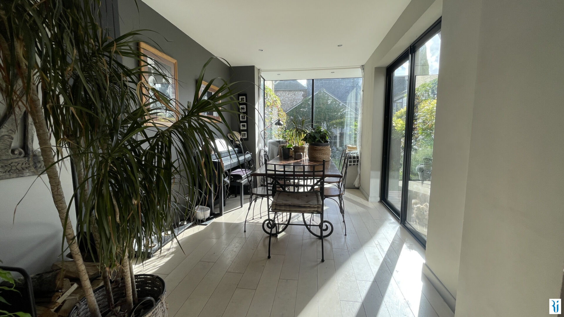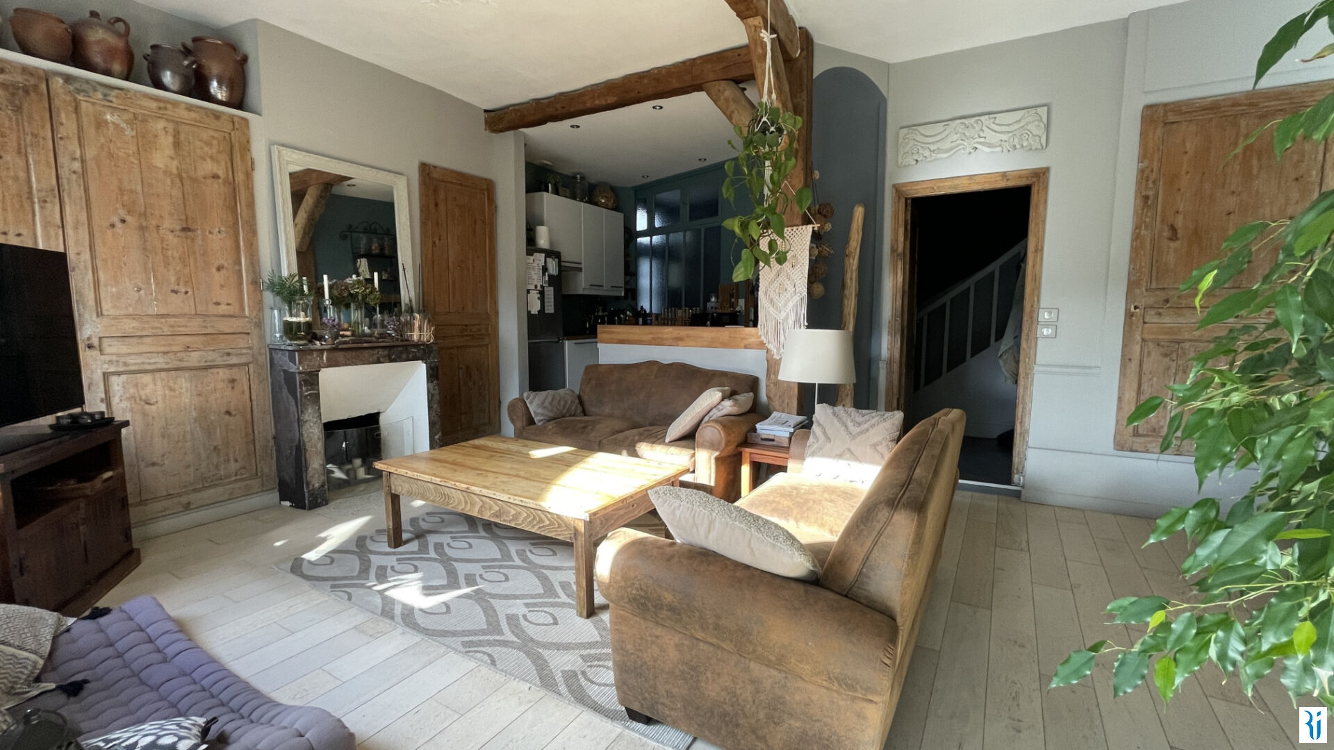 NOUVEAUTE, proposée en EXCLUSIVITE par le cabinet. ROUEN GARE. Idéalement située à 500 mètres de la gare de Rouen et dans rue très calme, superbe maison de ville de 112 m2, avec jardin plat et clos ainsi qu'une dépendance aménagée de 25 m2. rdc: entrée, séjour salle à manger de 38 m2, cuisine équipée ouverte, wc 1 er: palier, 2 chambres, salle de bains avec wc. 2 eme: palier, une chambre, bureau ou petite chambre supplémentaire, lingerie. cave à vin en sous sol, dépendance au fond du jardin pouvant accueillir salle de jeux/sport ou pièce de travail /atelier ainsi que grenier de rangement au dessus. Garage fermée pour une voiture et 2 roues disponible en location (70 euros / mois) à 50 m de la maison. Exposition plein sud, décoration raffinée et chaleureuse mélangeant le charme de l'ancien et le confort du contemporain. Rare à la vente. (5.00 % honoraires TTC à la charge de l'acquéreur.)