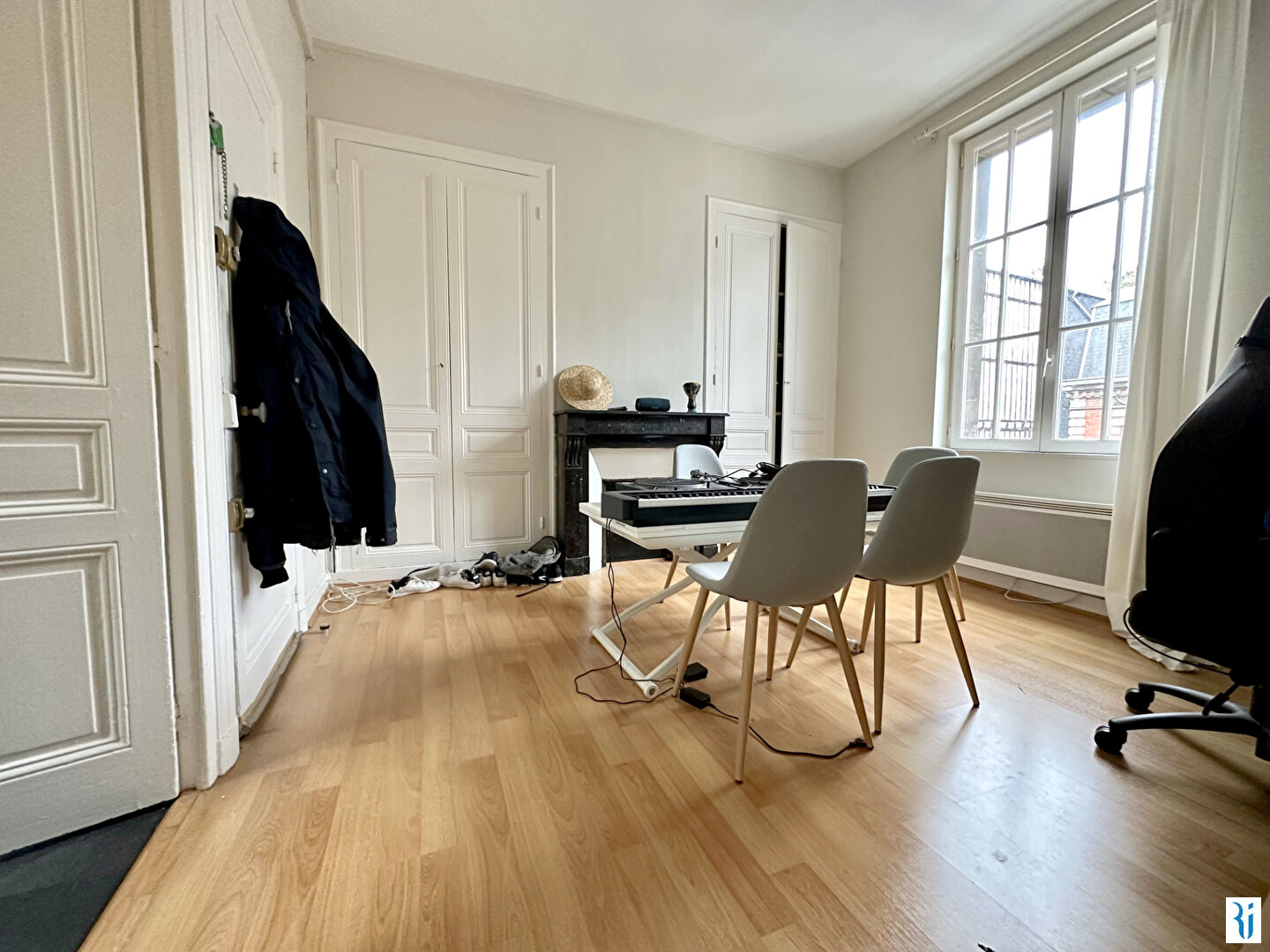 ROUEN HYPER CENTRE EN EXCLUSIVITE APPARTEMENT 2 PIECES bien distribué au coeur du centre ville, il est composé comme suit : Cuisine aménagée avec salle à manger, un salon, une pièce palière avec lingerie/dressing, une chambre, salle de douche avec wc - Nombreux rangements : placards, cellier sur le palier et cave Bon état et belle situation ACTUELLEMENT LOUE 616 euros + CHARGES BAIL NON MEUBLE DE DECEMBRE 2021 (5.68 % honoraires TTC à la charge de l'acquéreur.) Copropriété de 5 lots (Pas de procédure en cours). Charges annuelles : 480 euros.