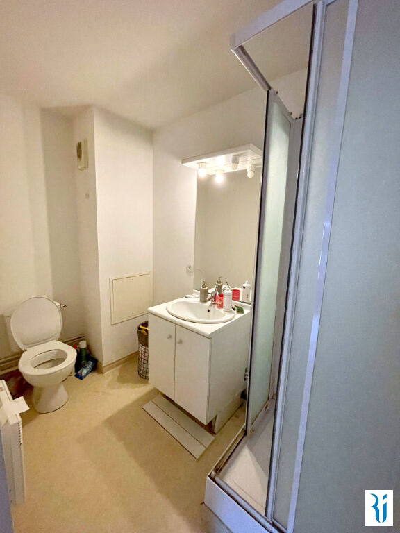 ROUEN PREFECTURE - Proximité immédiate faculté de droit/économie et Avenue Pasteur - Appartement 2 PIECES avec EMPLACEMENT DE PARKING POUR 2 VOITURES dans un immeuble moderne avec ascenseur situé au 5ème étage offrant : un séjour avec coin cuisine, une chambre avec placard, salle de douche avec wc - proche commerces et TEOR (5.93 % honoraires TTC à la charge de l'acquéreur.) Copropriété de 180 lots (). Charges annuelles : 1056 euros.