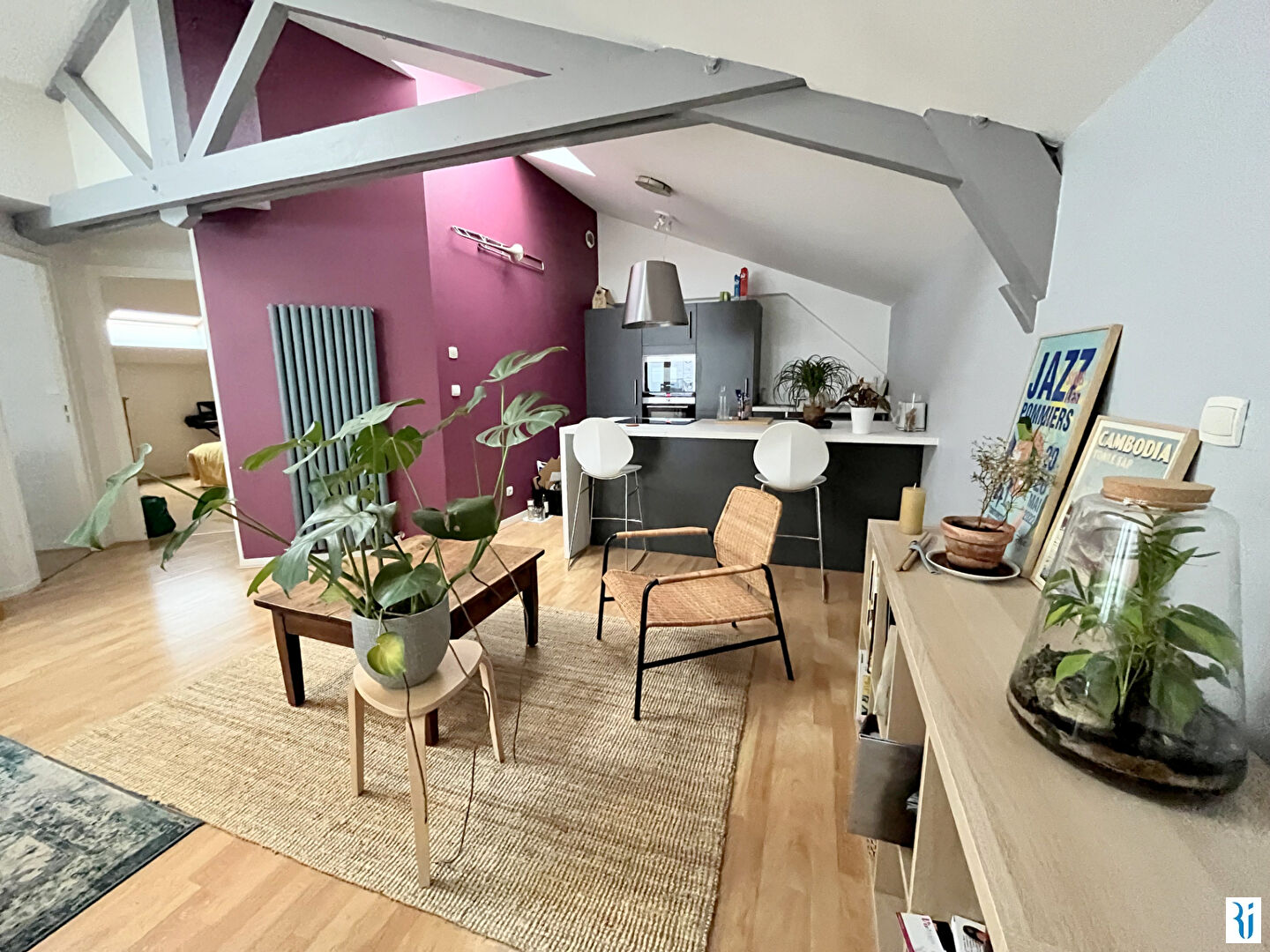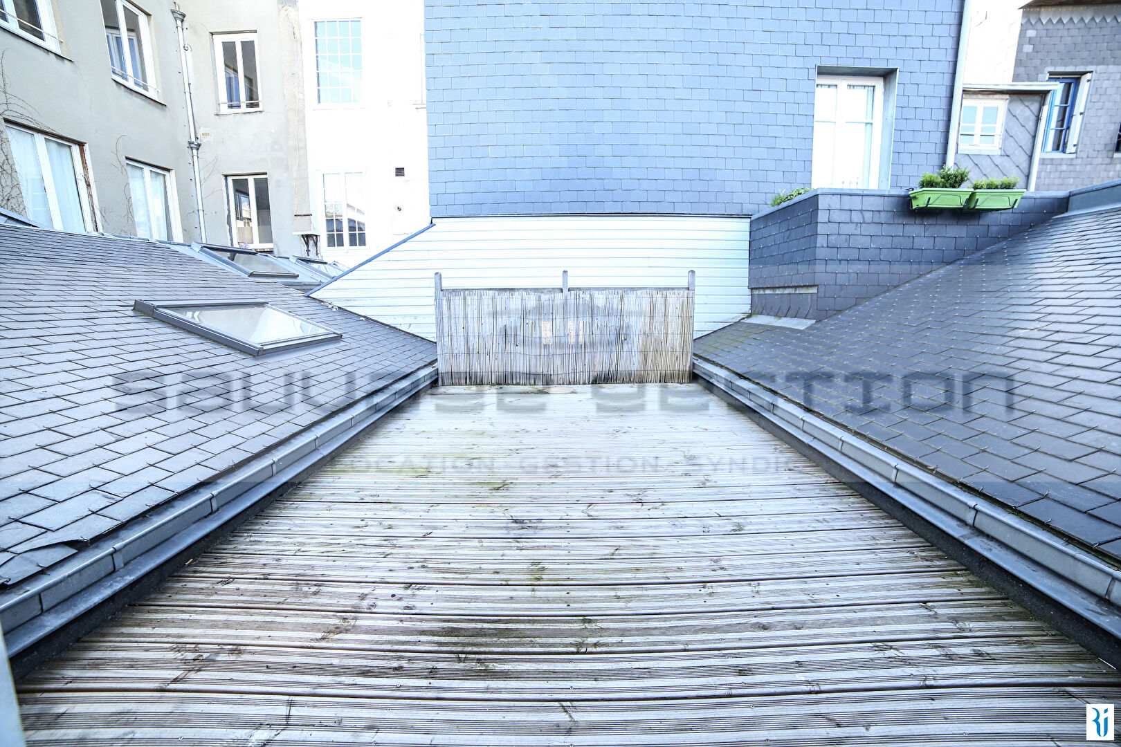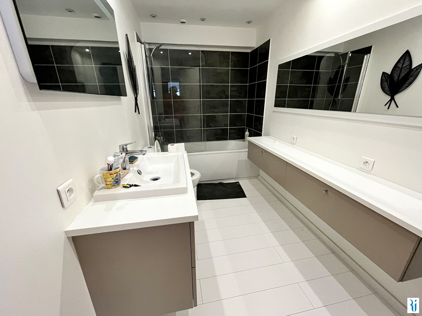 ROUEN PREFECTURE - EN EXCLUSIVITE - Très agréable APPARTEMENT 3 PIECES de 82m² habitables Composé au RDC : entrée avec placard, lingerie et WC. Au 1er étage : séjour/cuisine ouverte de 32m², 2 grandes chambres dont une avec penderie, salle de bains avec WC, 2 celliers, TERRASSE , PARKING COUVERT Chauffage et eau chaude individuel au gaz. (4.25 % honoraires TTC à la charge de l'acquéreur.) Copropriété de 12 lots (Pas de procédure en cours). Charges annuelles : 1512 euros.
