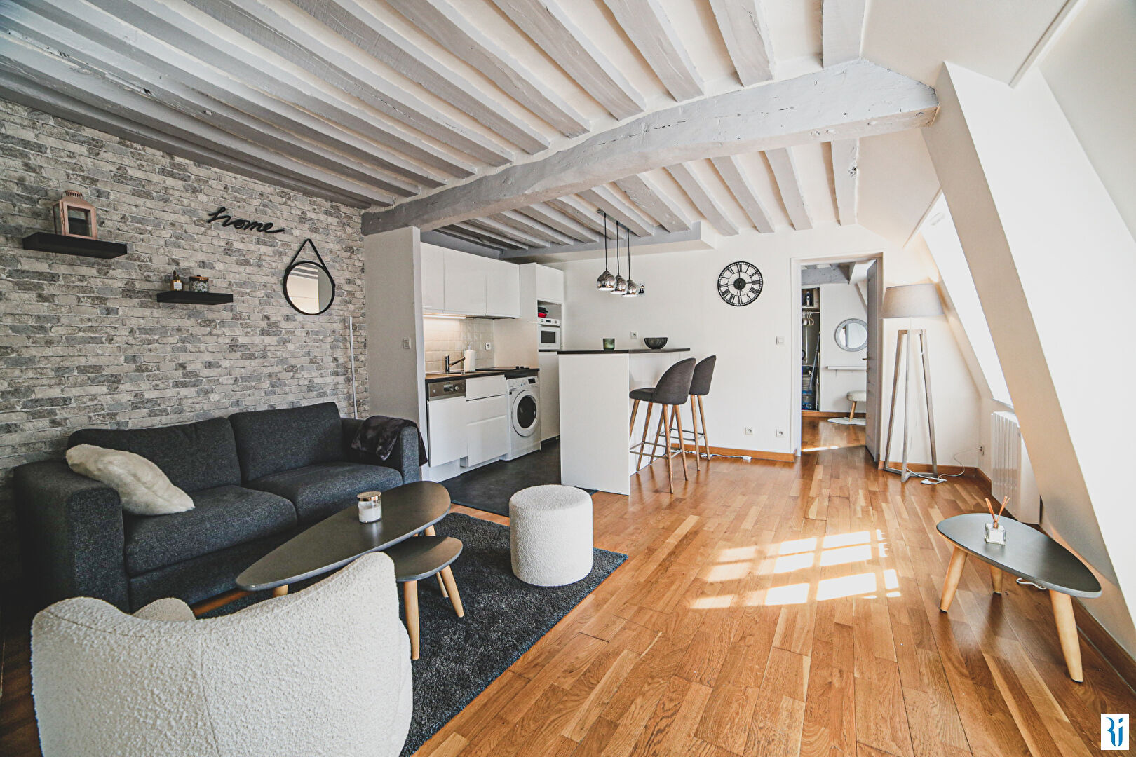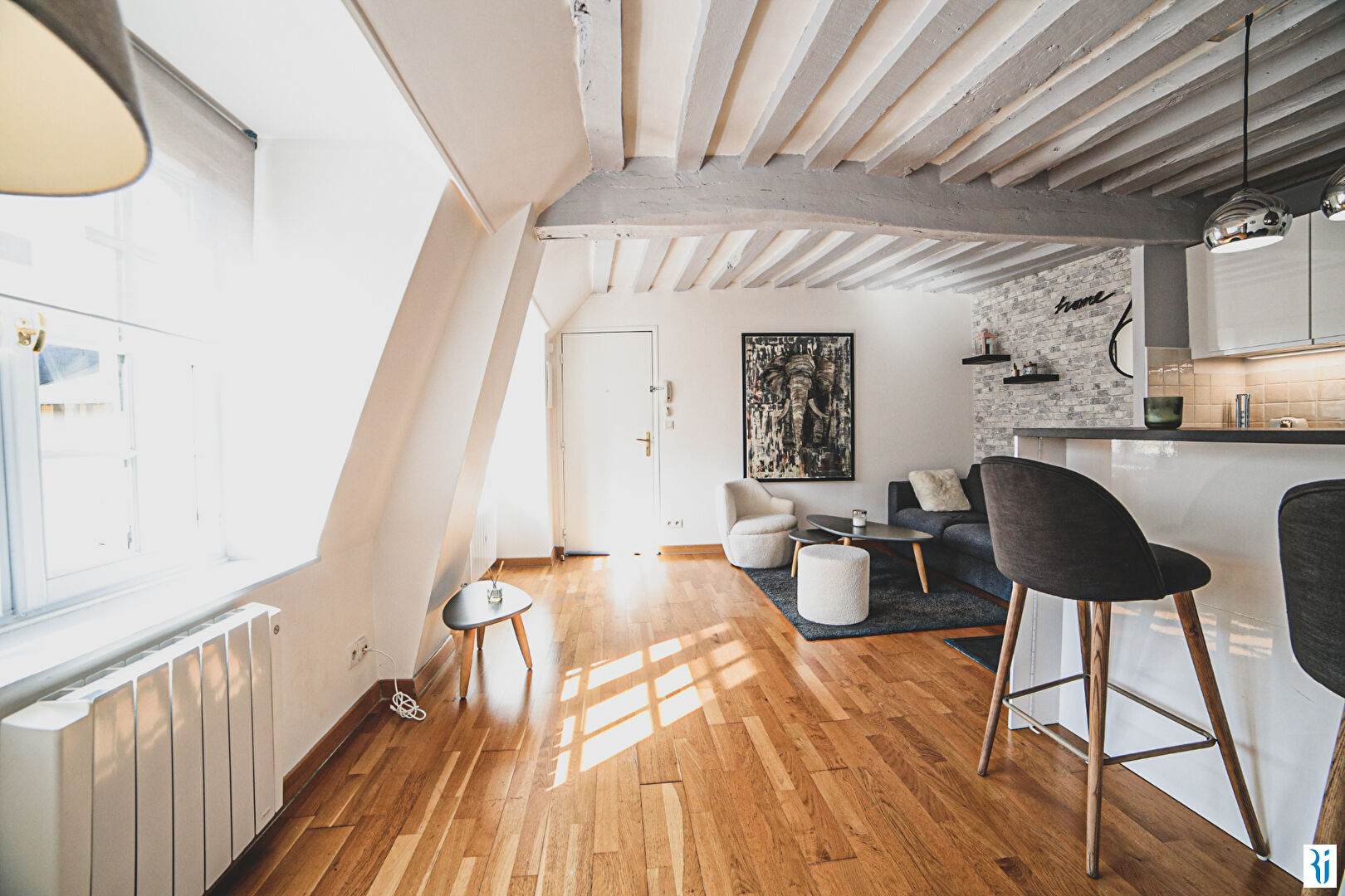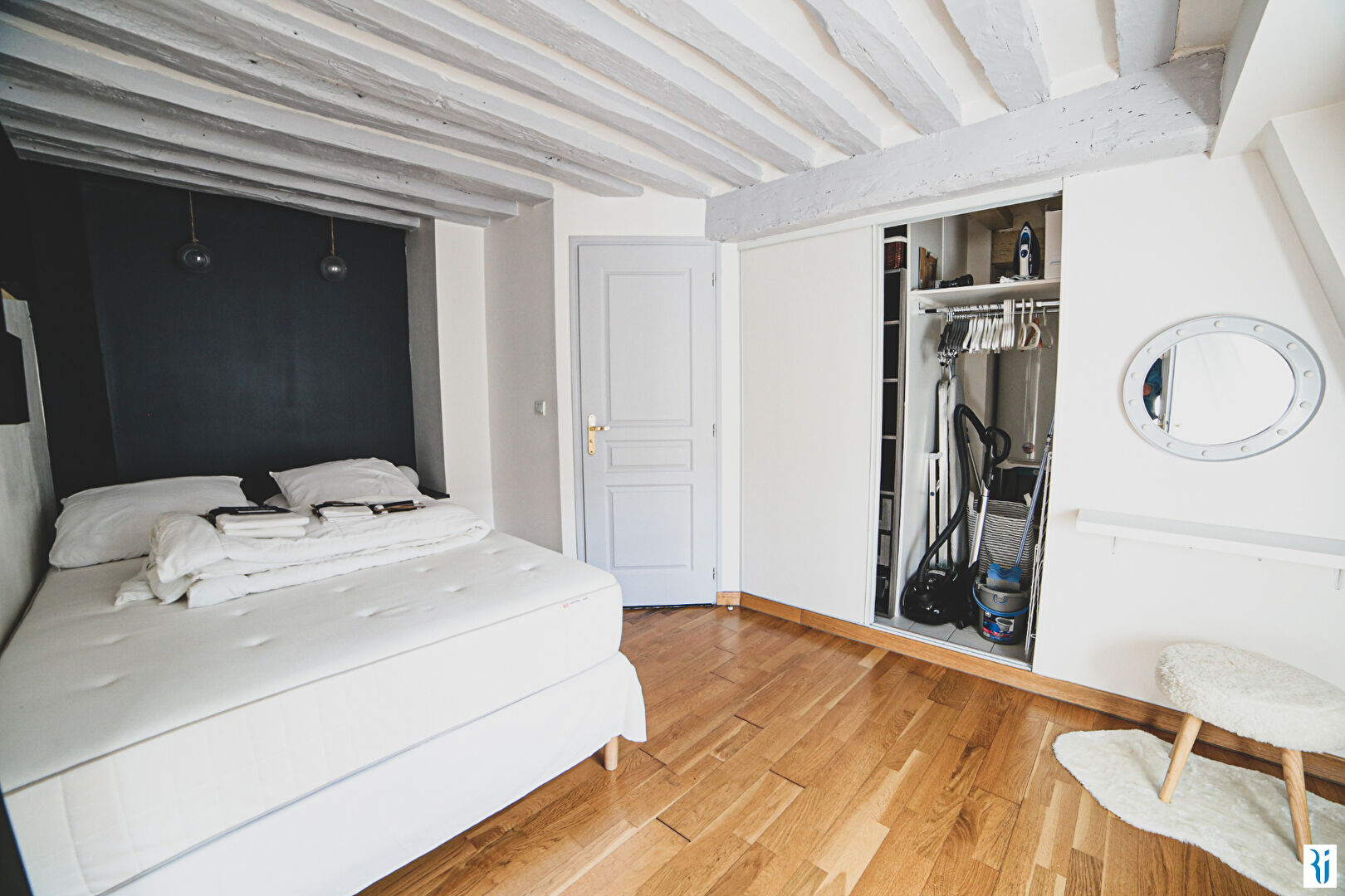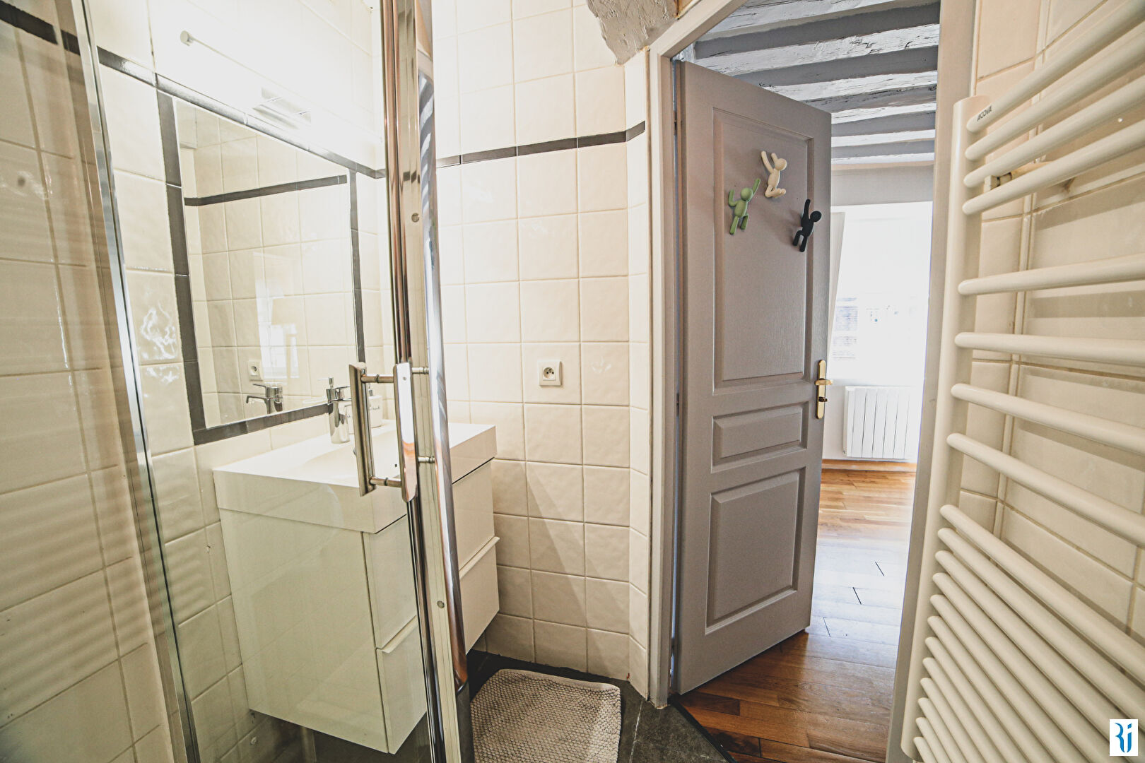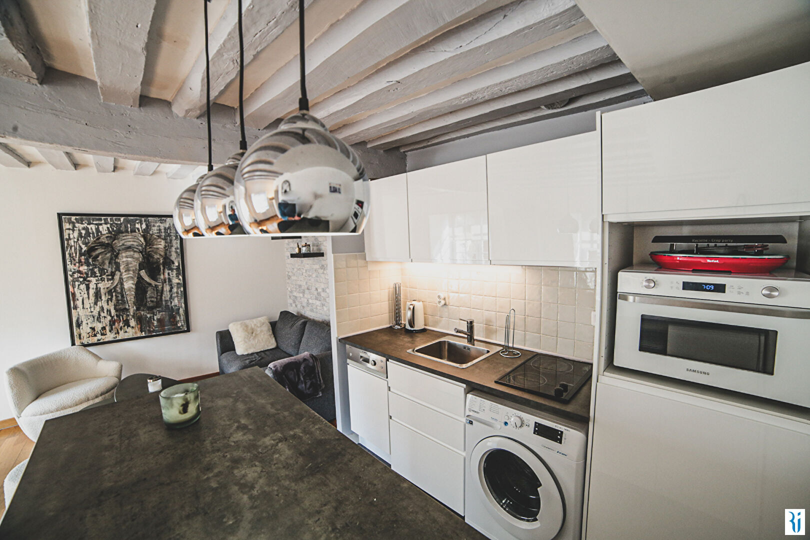 ROUEN PLACE DU VIEUX MARCHE EN EXCLUSIVITE SAUVAGE TRANSACTION VOUS PROPOSE EN EXCLUSIVITE CE MAGNIFIQUE 2 PIECES SITUE AU SEIN DE "L'HOTEL TURGOT" AU 3EME ET DERNIER ETAGE SUR COUR COMPRENANT : UN SEJOUR/CUISINE OUVERTE EQUIPEE DE 21M², UNE CHAMBRE AVEC SON DRESSING, UNE SALLE DE DOUCHE PRECISIONS : L'appartement est actuellement loué 673 euros + 55 euros de charges en bail meublé (1 an) - double vitrage, chauffage électrique, tout le mobilier reste NOTRE INSTINCT VOUS LE CONSEILLE POUR : La beauté du site, le confort d'un immeuble rénové récemment, le calme, sa valeur sûre (5.45 % honoraires TTC à la charge de l'acquéreur.) Copropriété de 24 lots (Pas de procédure en cours). Charges annuelles : 912 euros.
