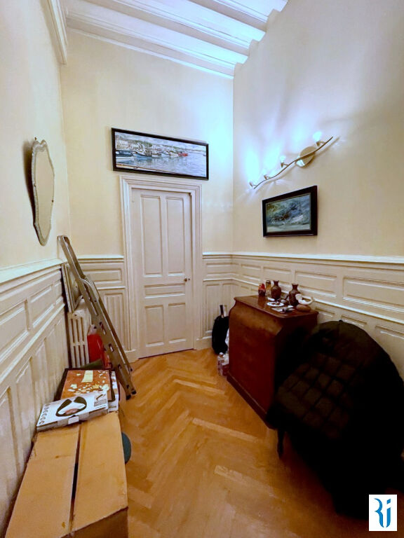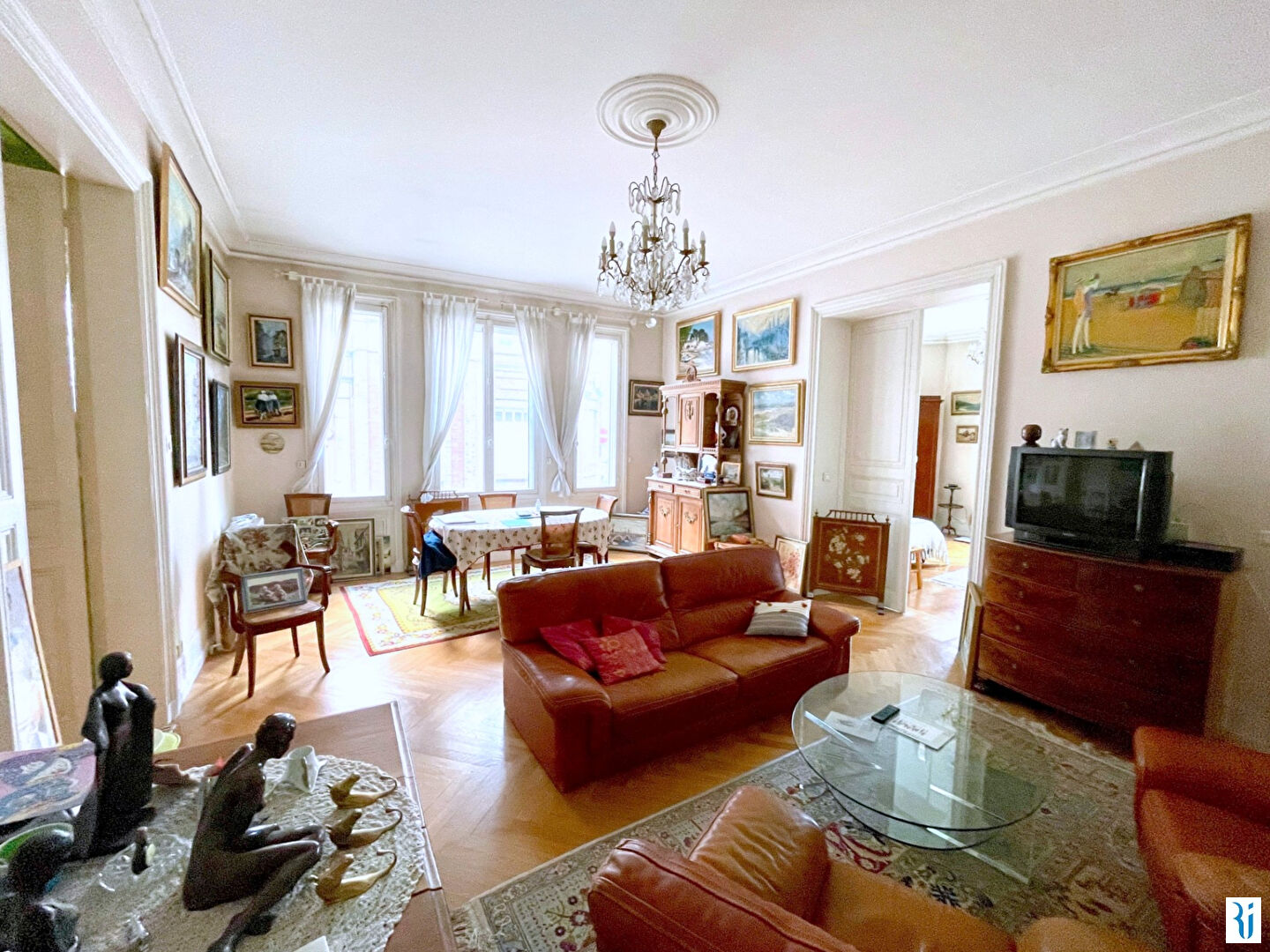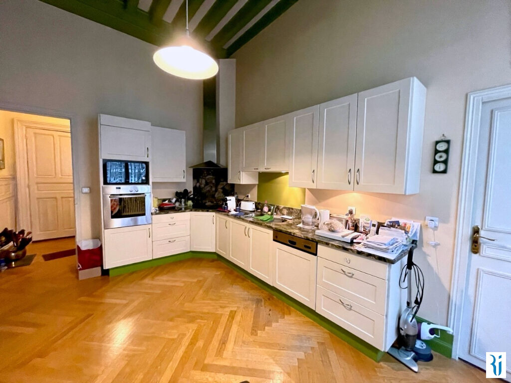 ROUEN VIEUX MARCHE/PREFECTURE - EN EXCLUSIVITE - Vaste appartement offrant de beaux volumes grâce à ses grandes pièces et sa hauteur sous plafonds. Il se compose d'une entrée avec un vestiaire, une cuisine de 17m², un séjour de 36m², 2 grandes chambres (3eme possible) avec chacune leurs salles de douches, lingerie/chaufferie - 3 caves - 2 PARKINGS dont un couvert - Très bel immeuble proche toutes commodités - (4.77 % honoraires TTC à la charge de l'acquéreur.) Copropriété de 5 lots (Pas de procédure en cours). Charges annuelles : 1600 euros.